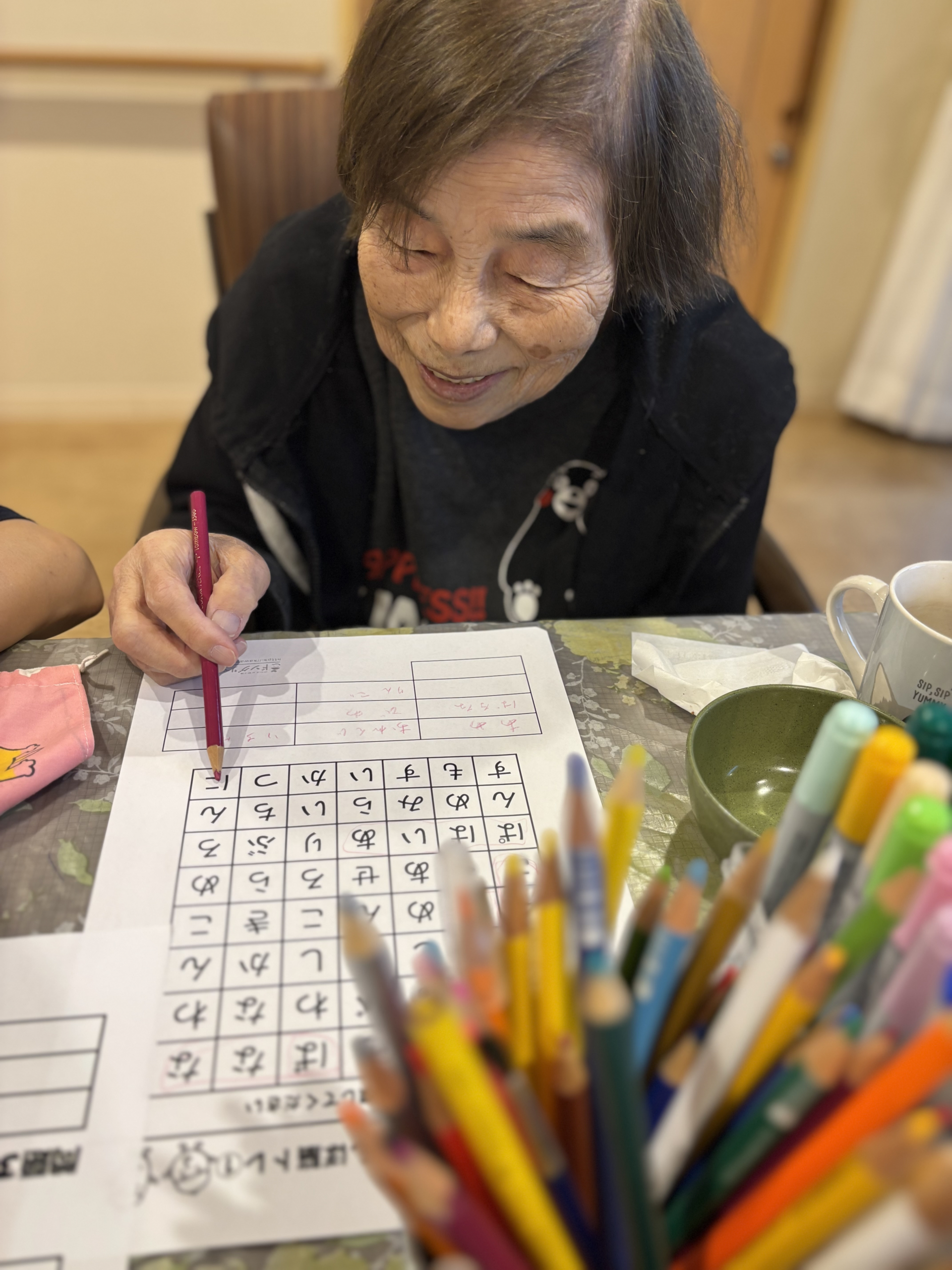 この前、皆さまと一緒に文字かくれんぼレク(文字遊びレクリエーションを行いました♪