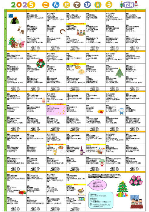 2025年12月の献立表をアップロードしたので、こちらからご確認ください♪