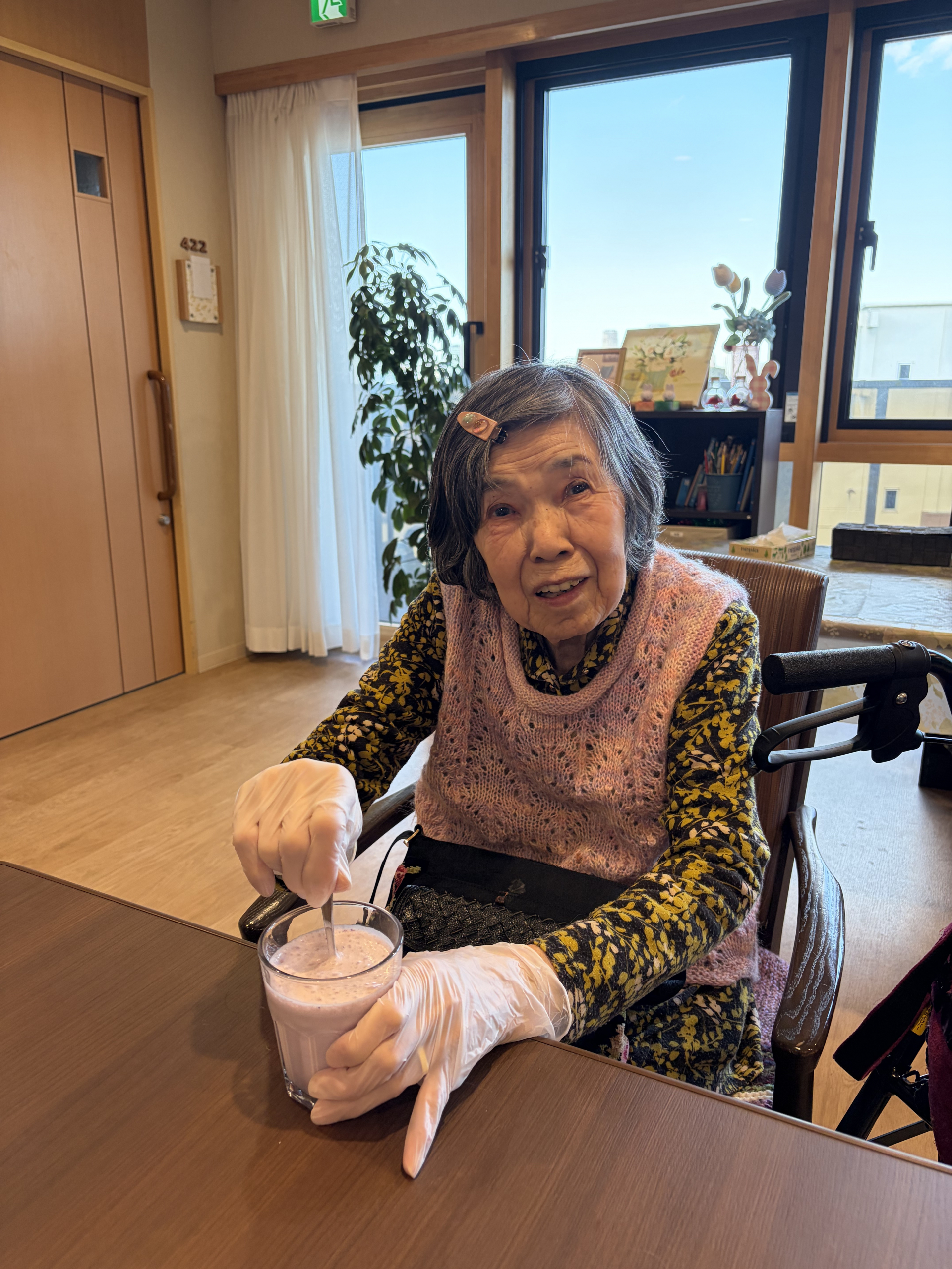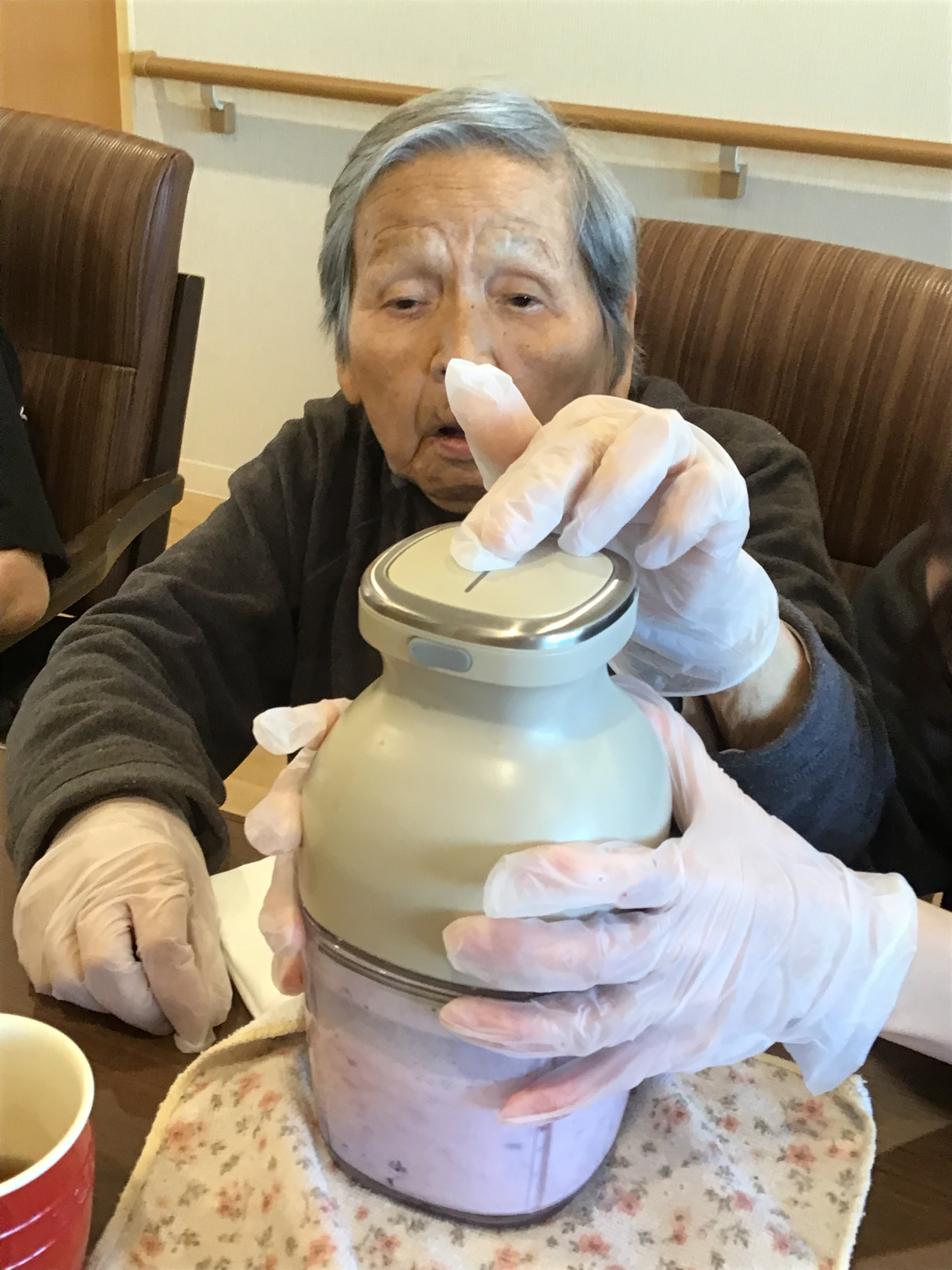 2月のバレンタインレクリエーションとして、チョコレートスムージーを作りました♪