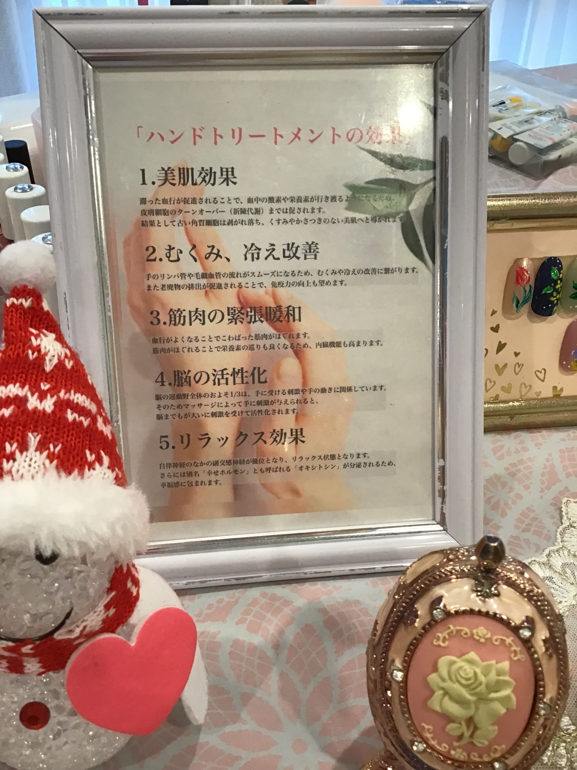 ネイルのほかにも、ハンドマッサージのコースもあるのでネイルはちょっとな…という方でもご利用いただけます!