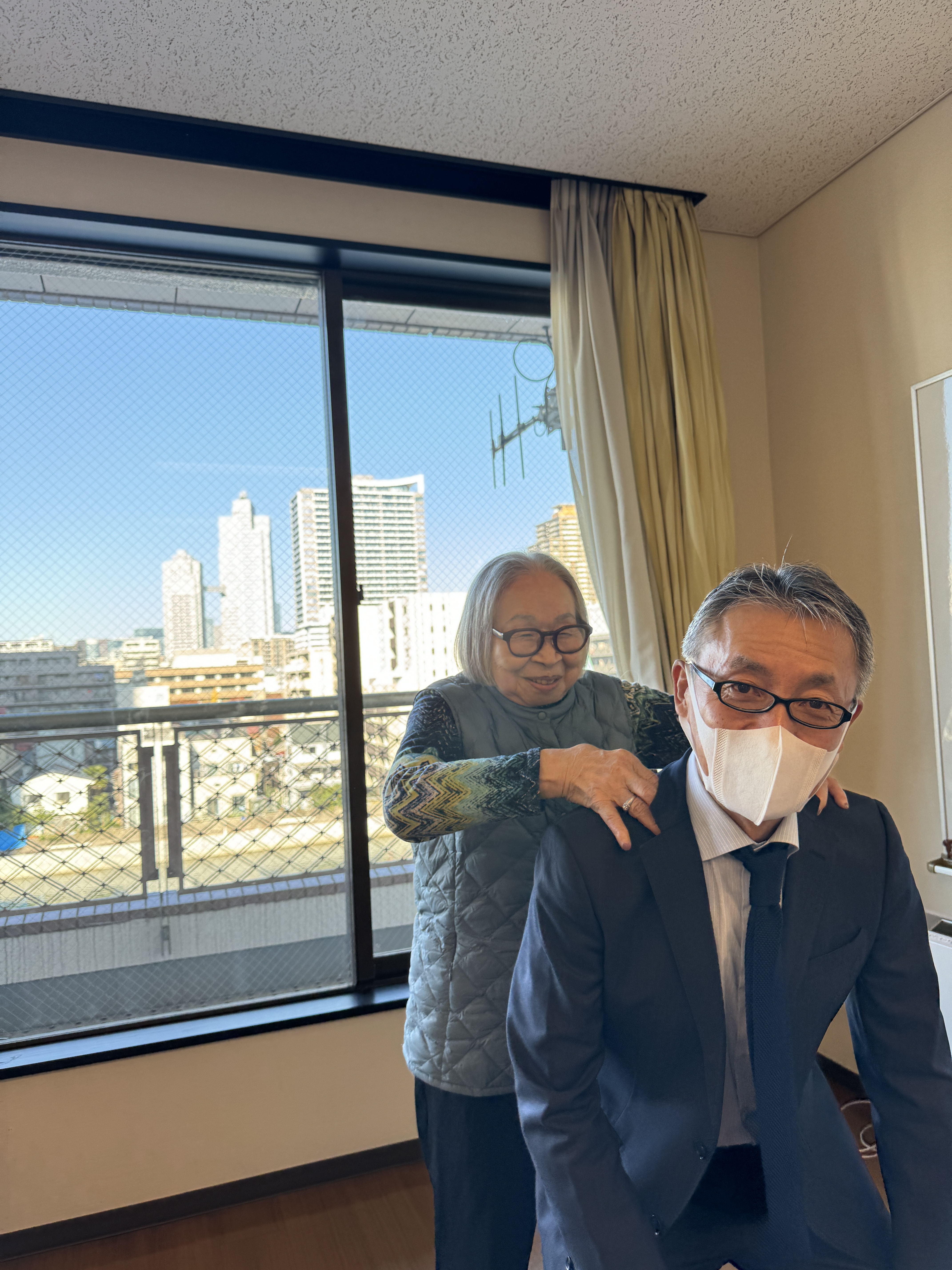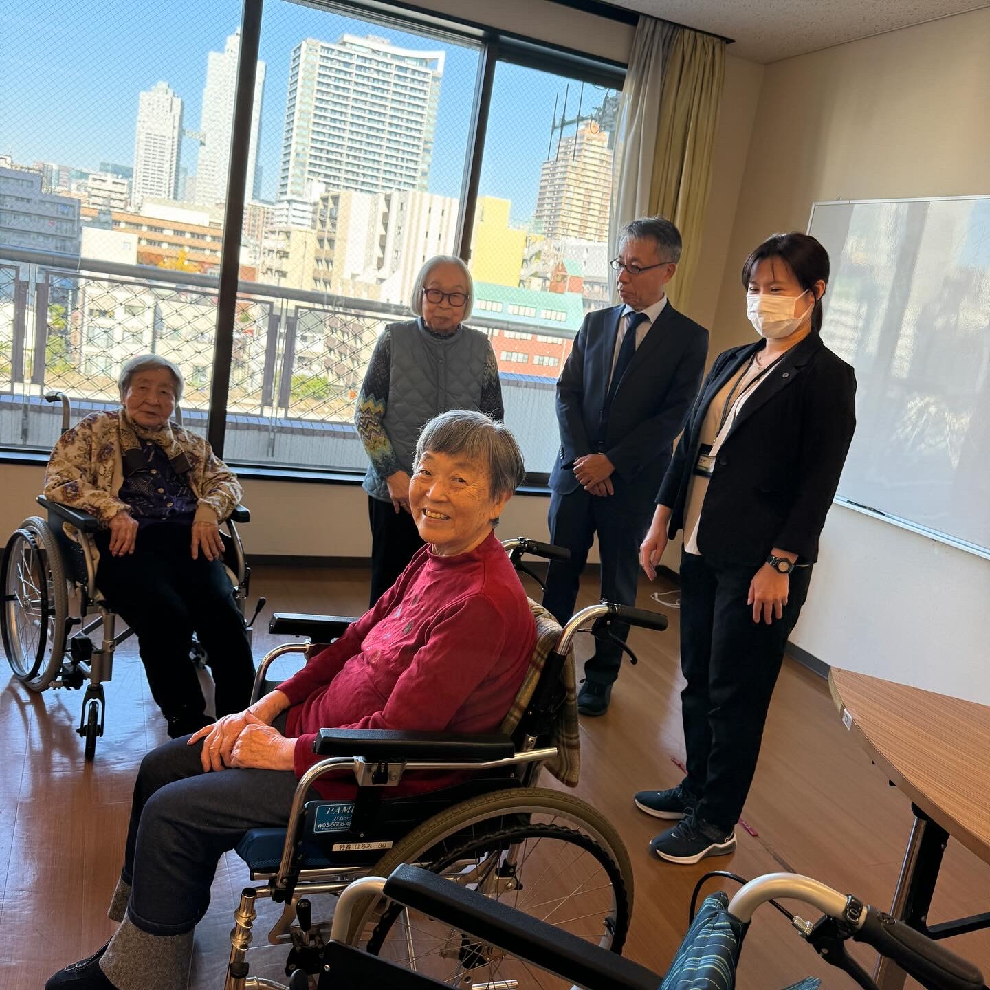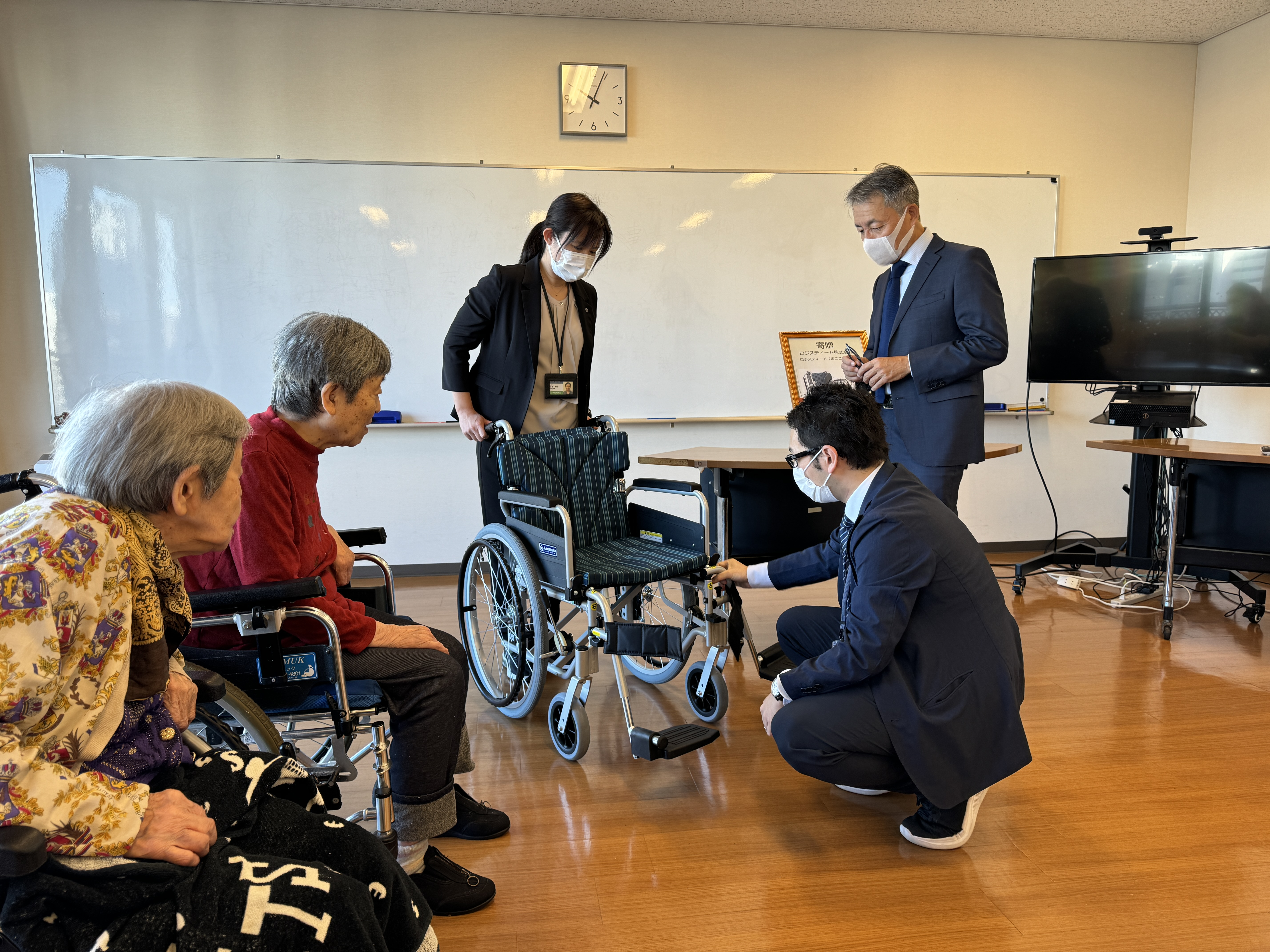 4階のご利用者様と車椅子の贈呈式を行わせていただきました。