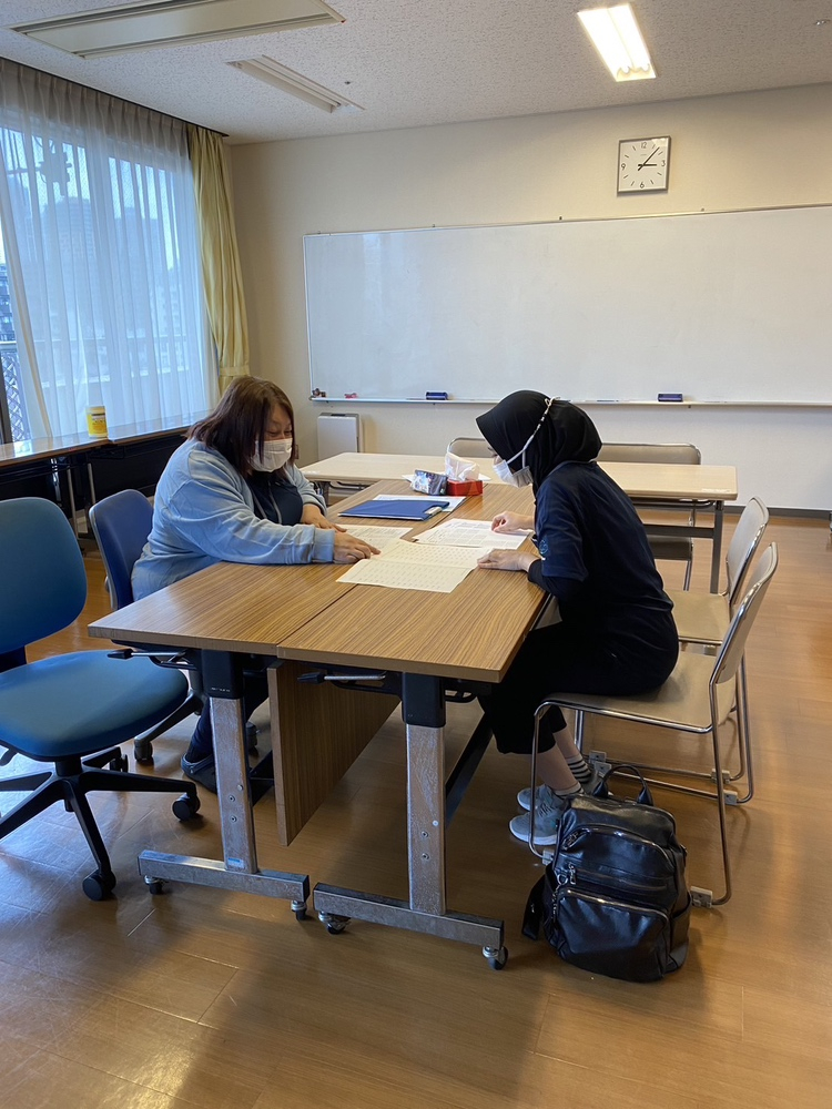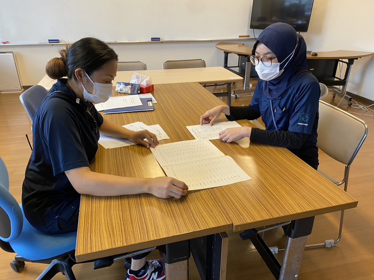 先日、昨年入職されたEPA職員4名の漢字テスト返却、結果説明、面談を行いました。