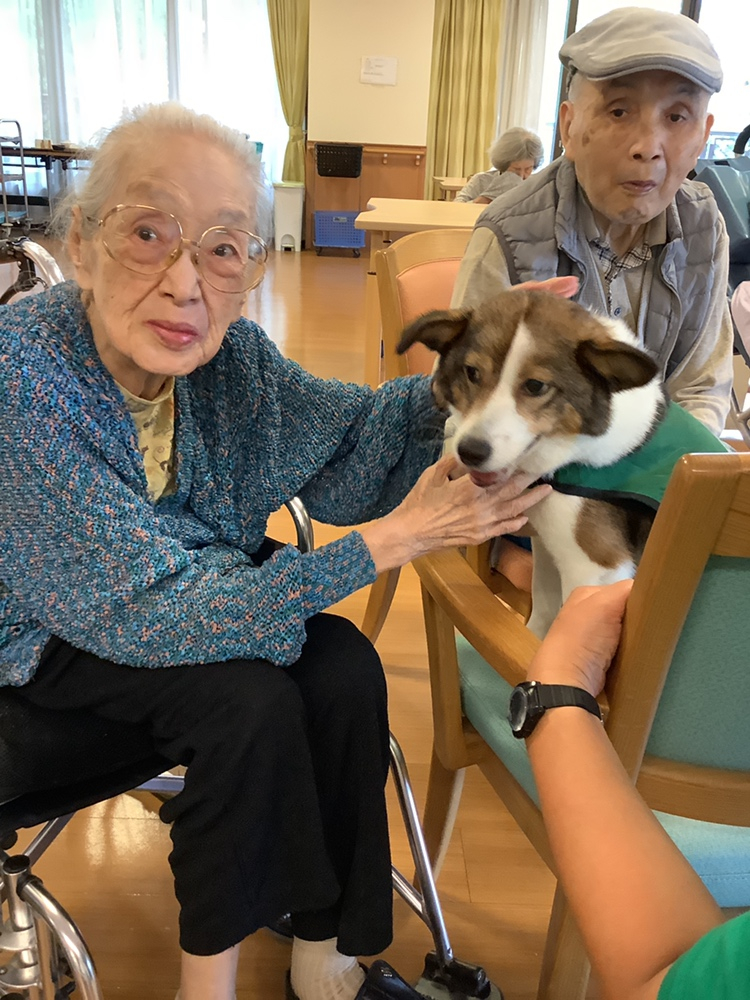 マイホームはるみには1ヵ月に2回、セラピー犬に癒しにきていただいています!