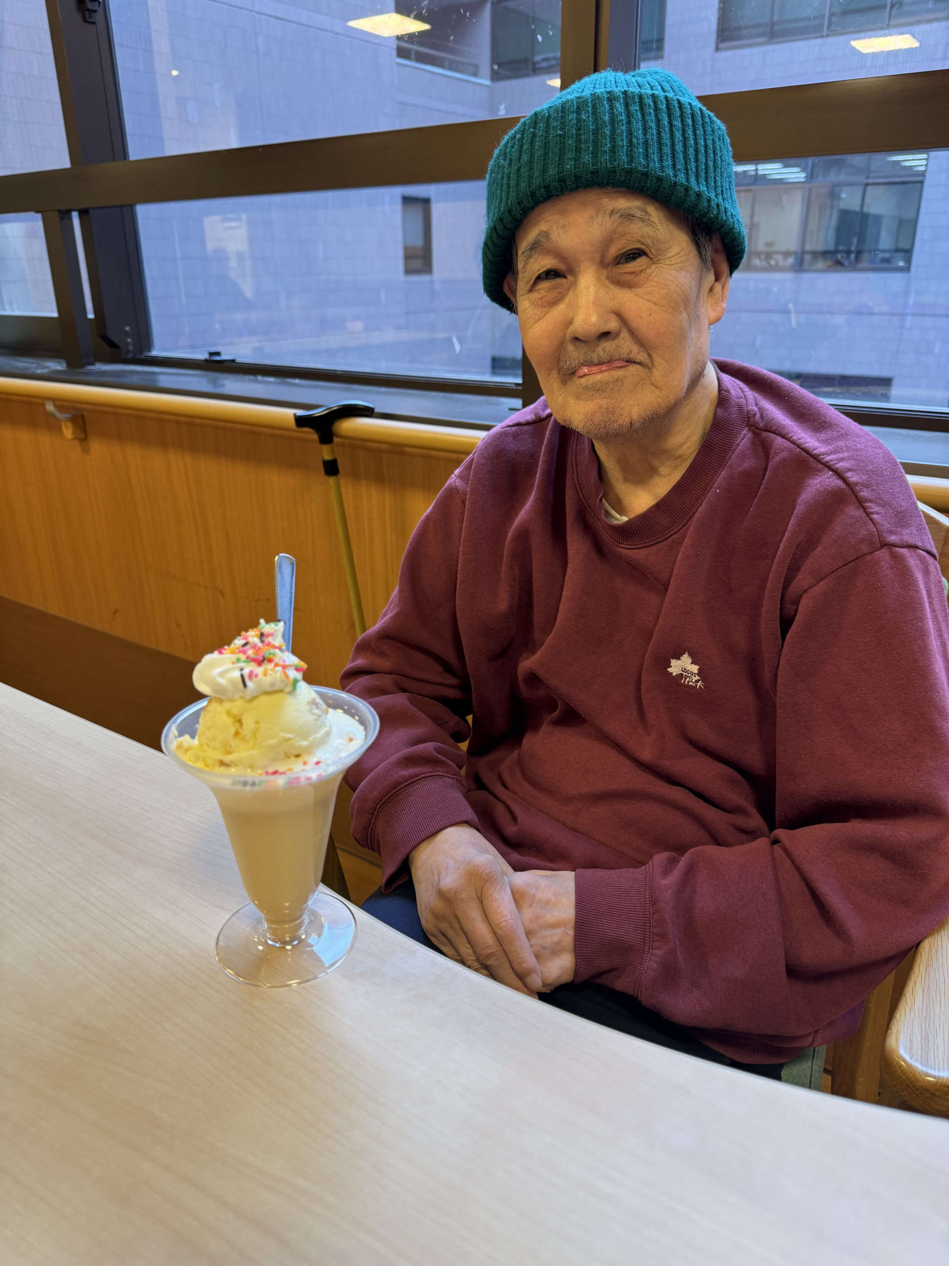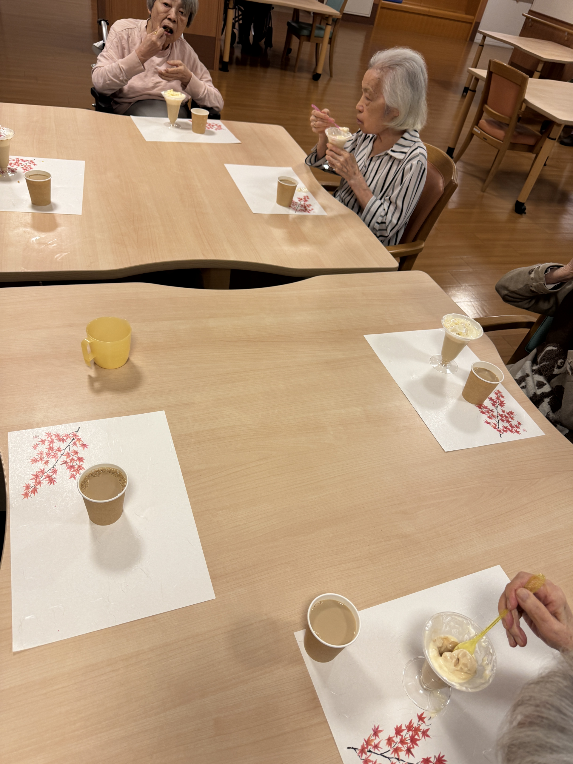 マロンババロアの上に牛乳プリン、キャラメルアイスにホイップ、トッピングをいたしました!