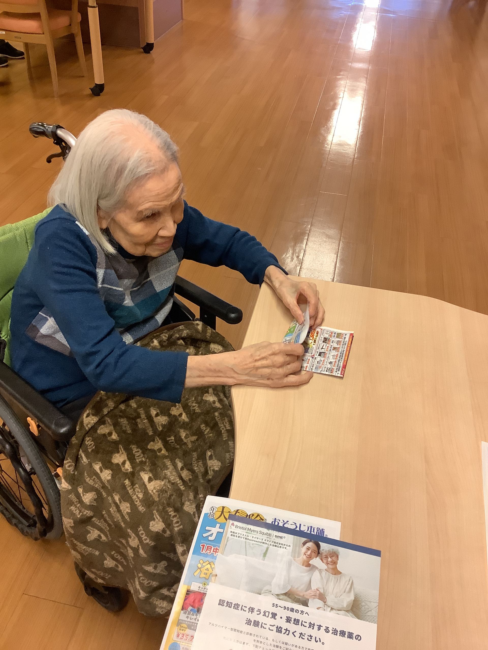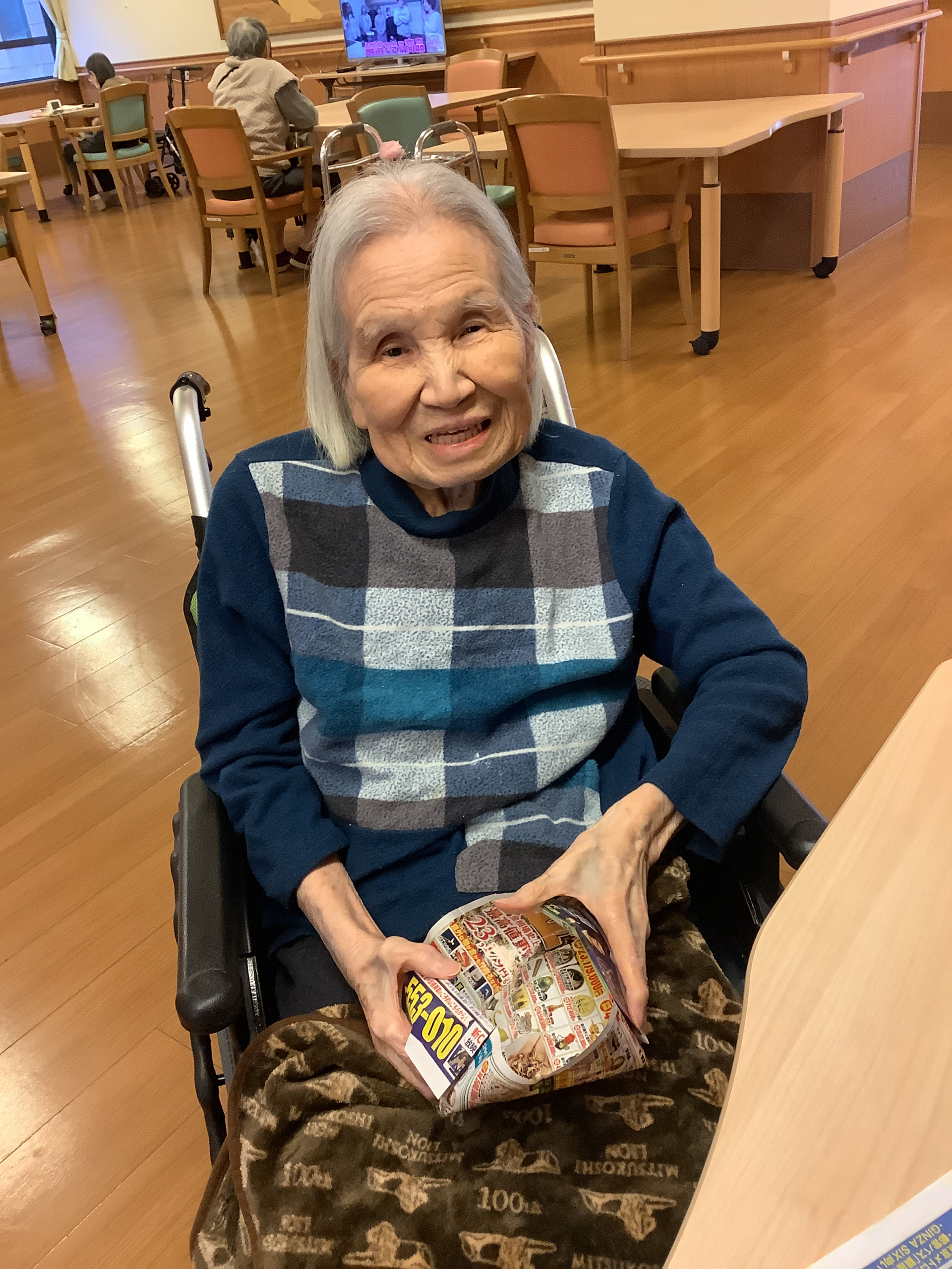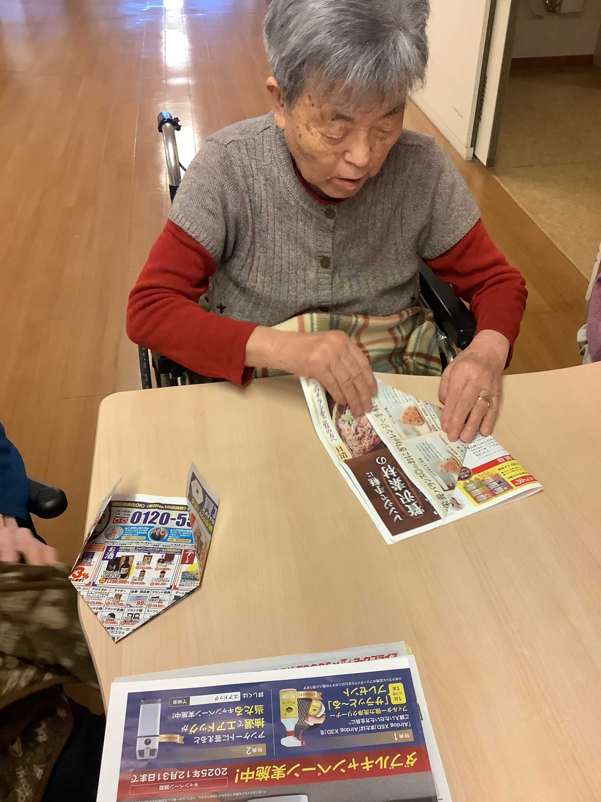 4階です!!本日は、ダイニングで利用者様と一緒に「チラシでゴミ箱」を作りました!