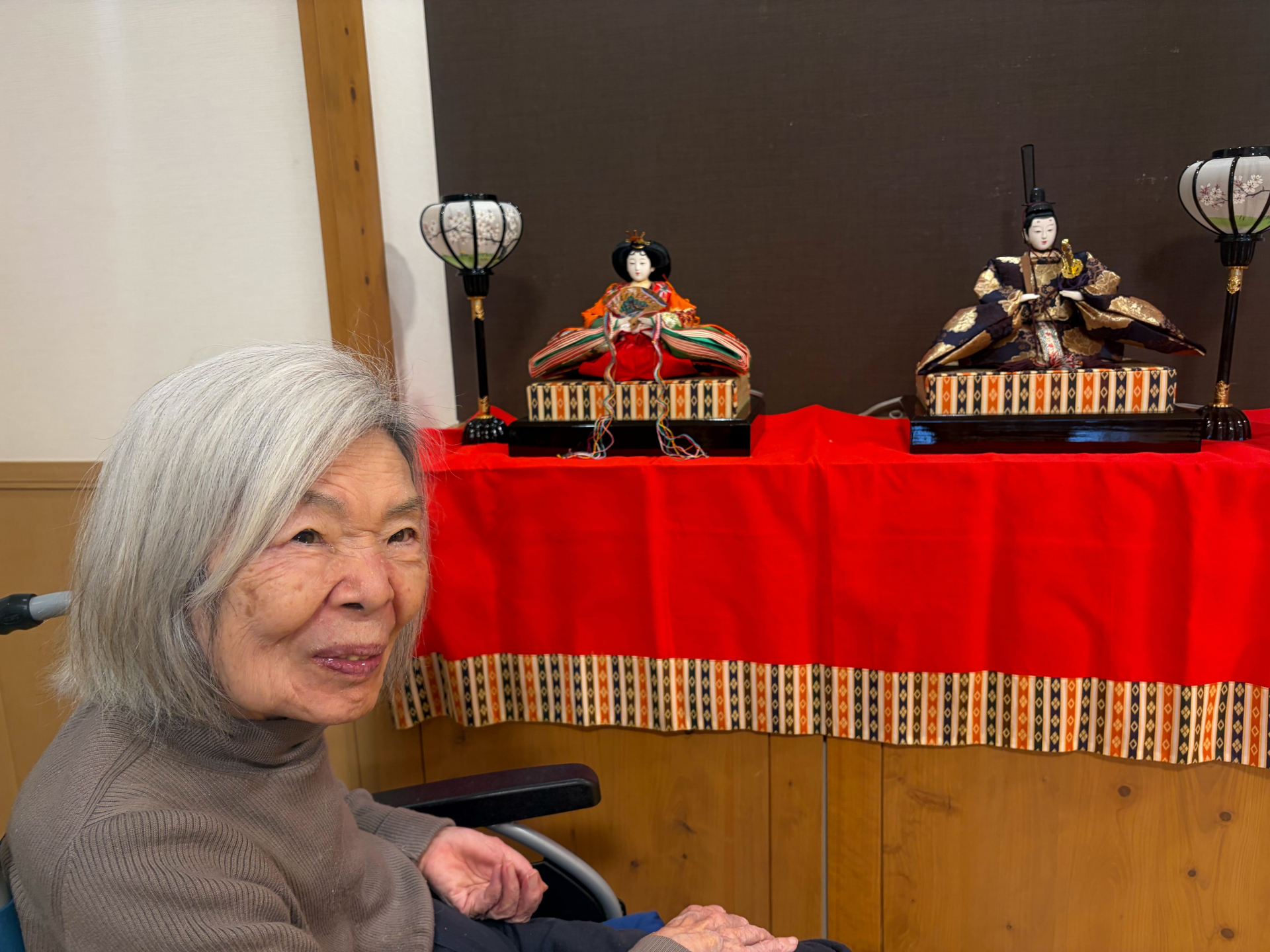 マイホームはるみの玄関にもお雛様を飾らせていただきました。
