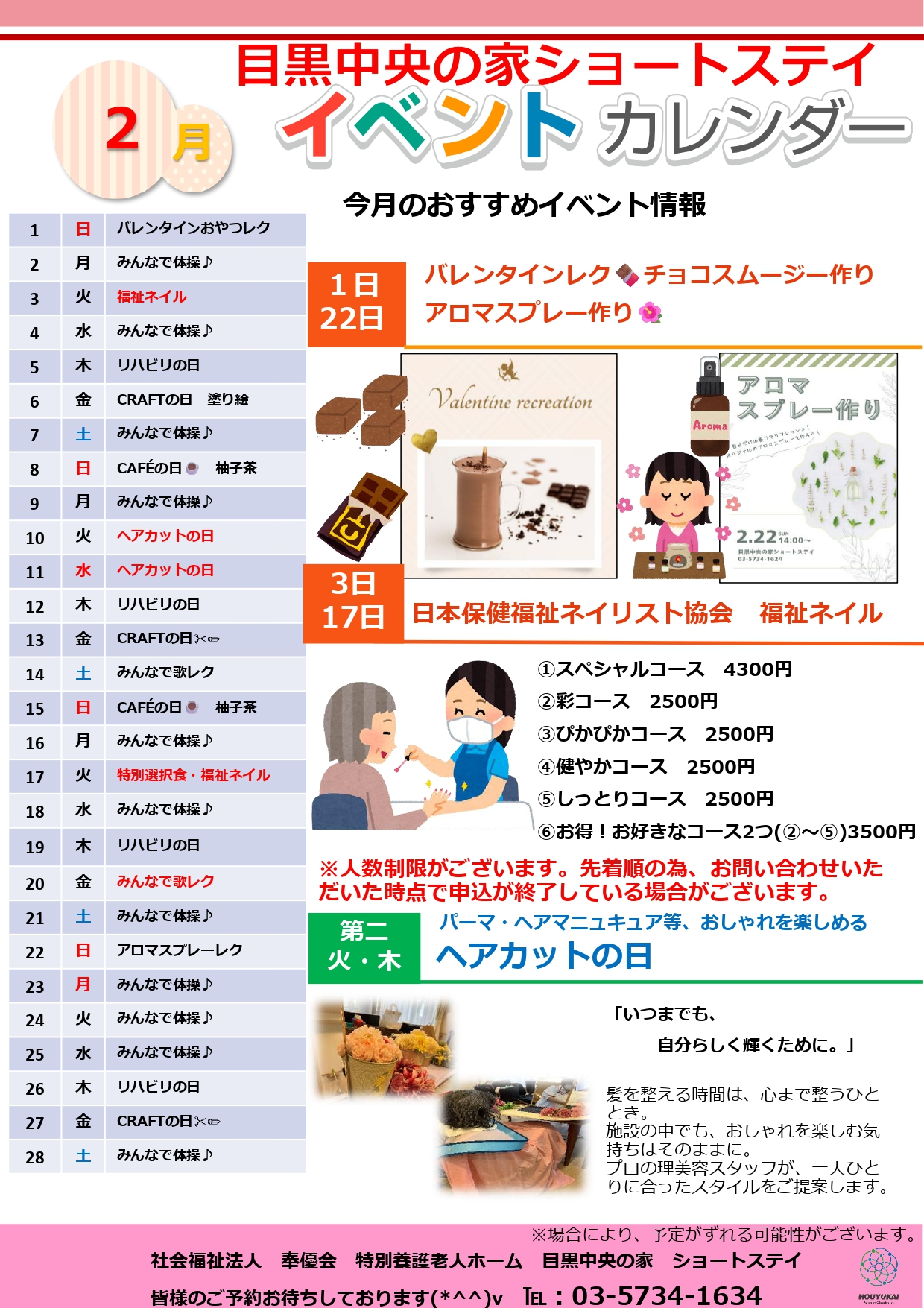 特養ショートステイ 2月イベントカレンダー(港区、目黒区)