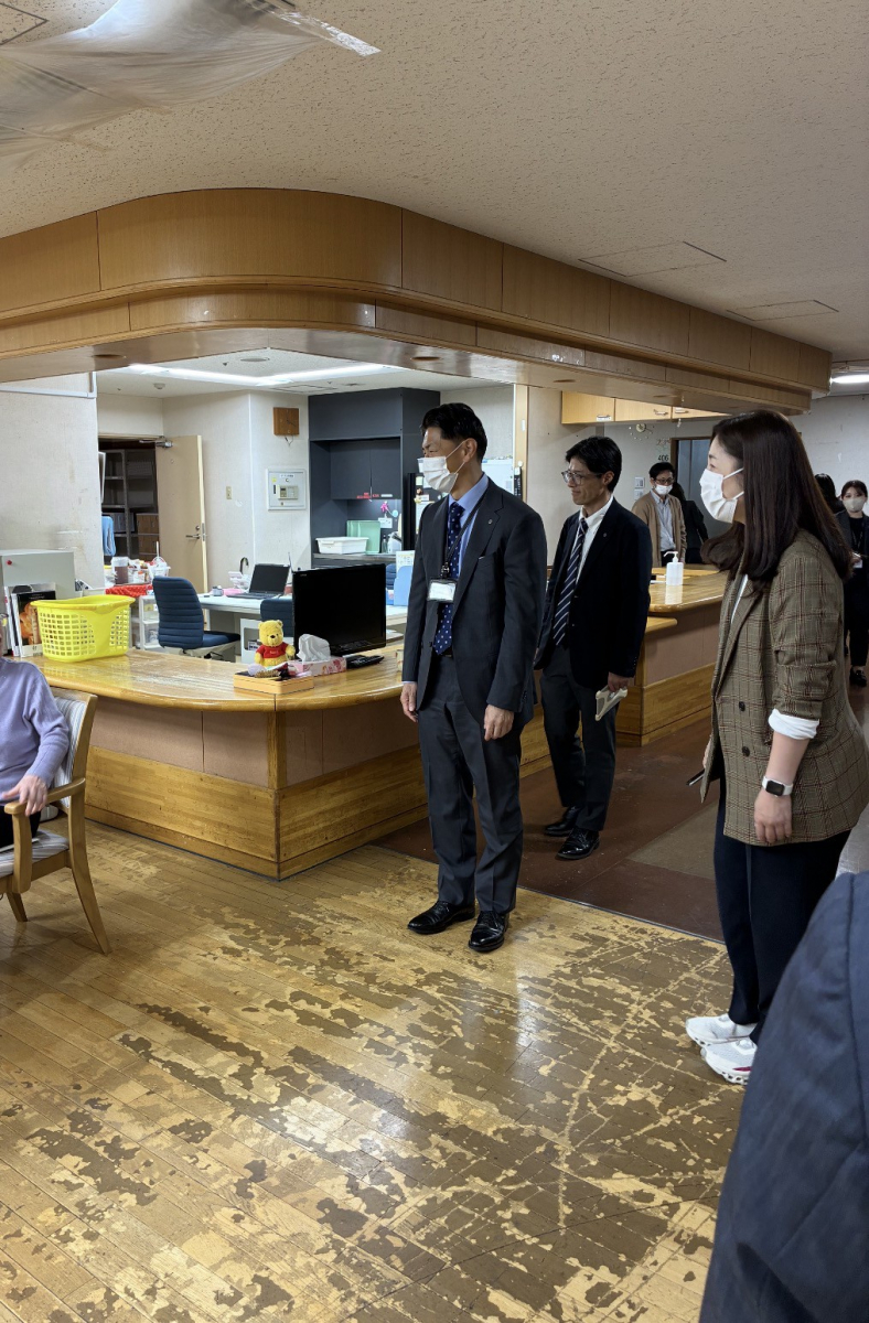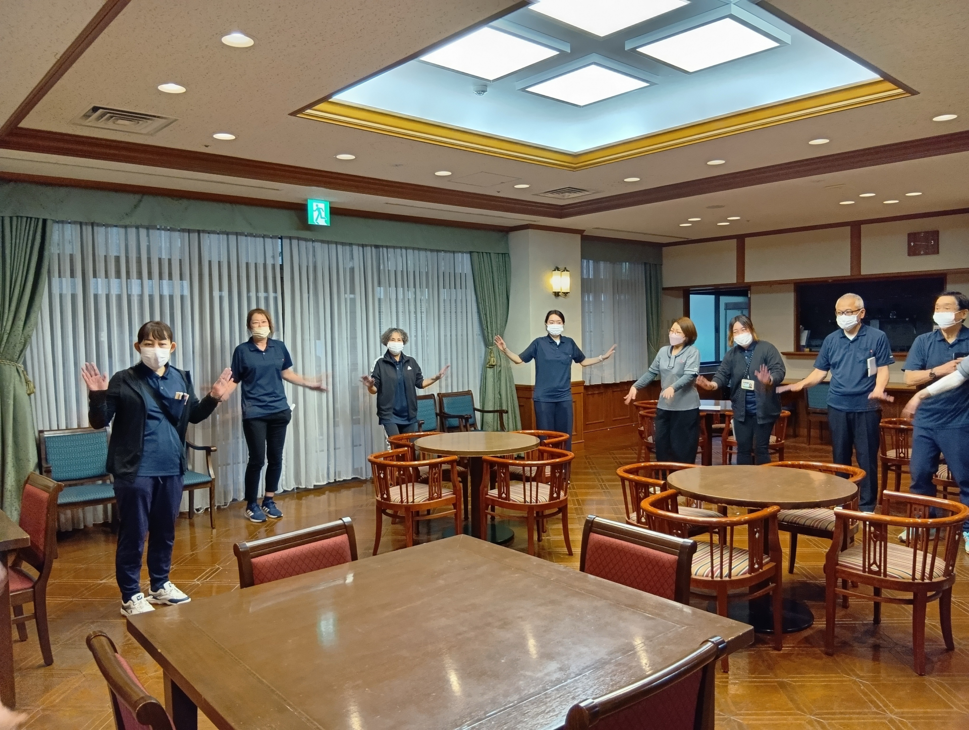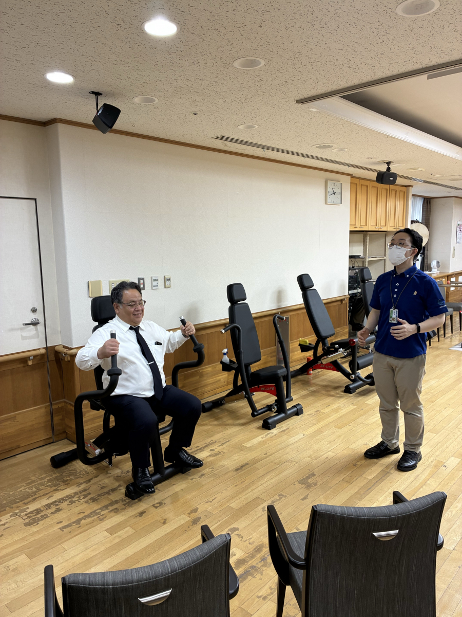 激励会の後は、理事長とともに各フロアを巡り、ご利用者や職員へご挨拶を行いました。