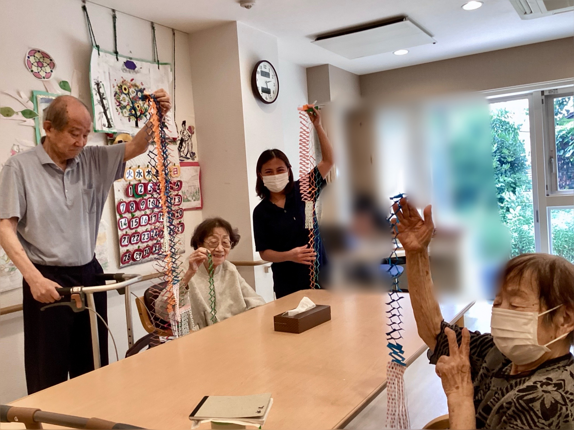 昨日、皆さんと作った七夕飾り、ついに完成しました!