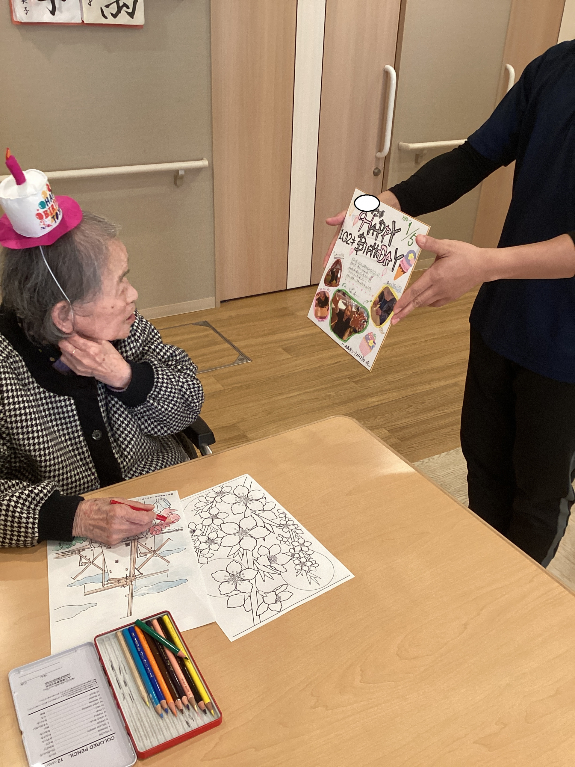 職員からお祝いの言葉を受けると「え~私もう102歳なの~?」と大変驚かれていました。