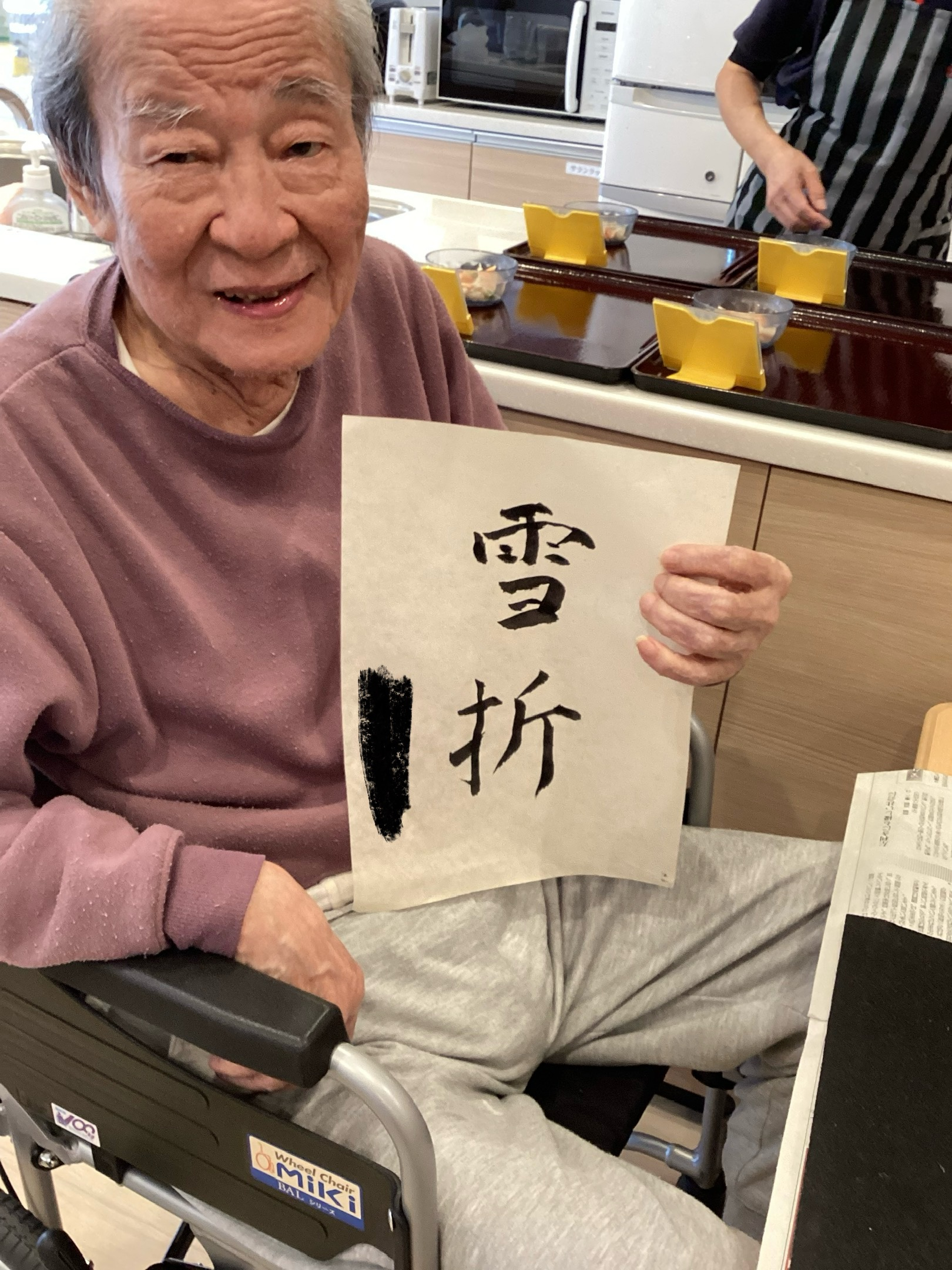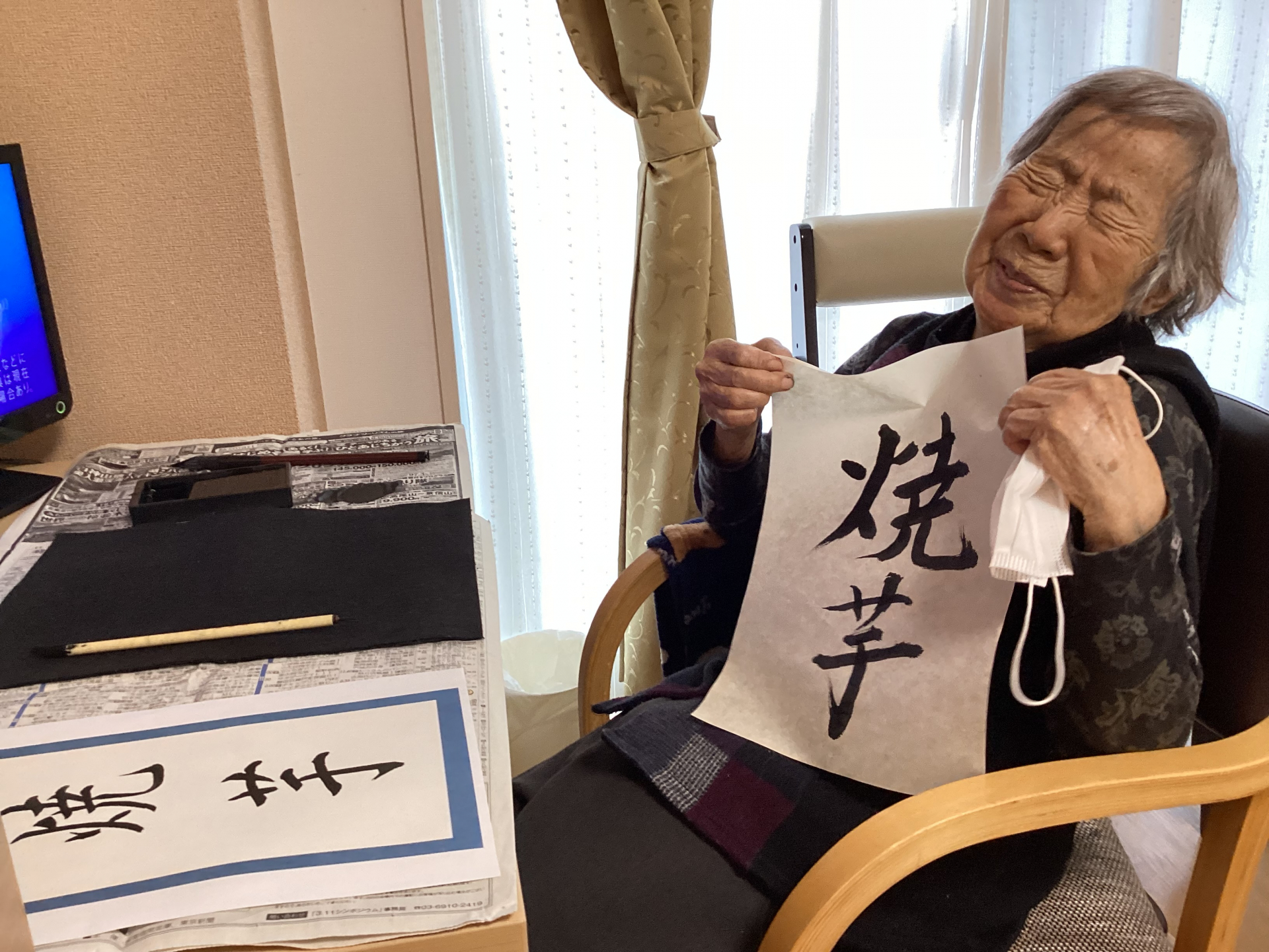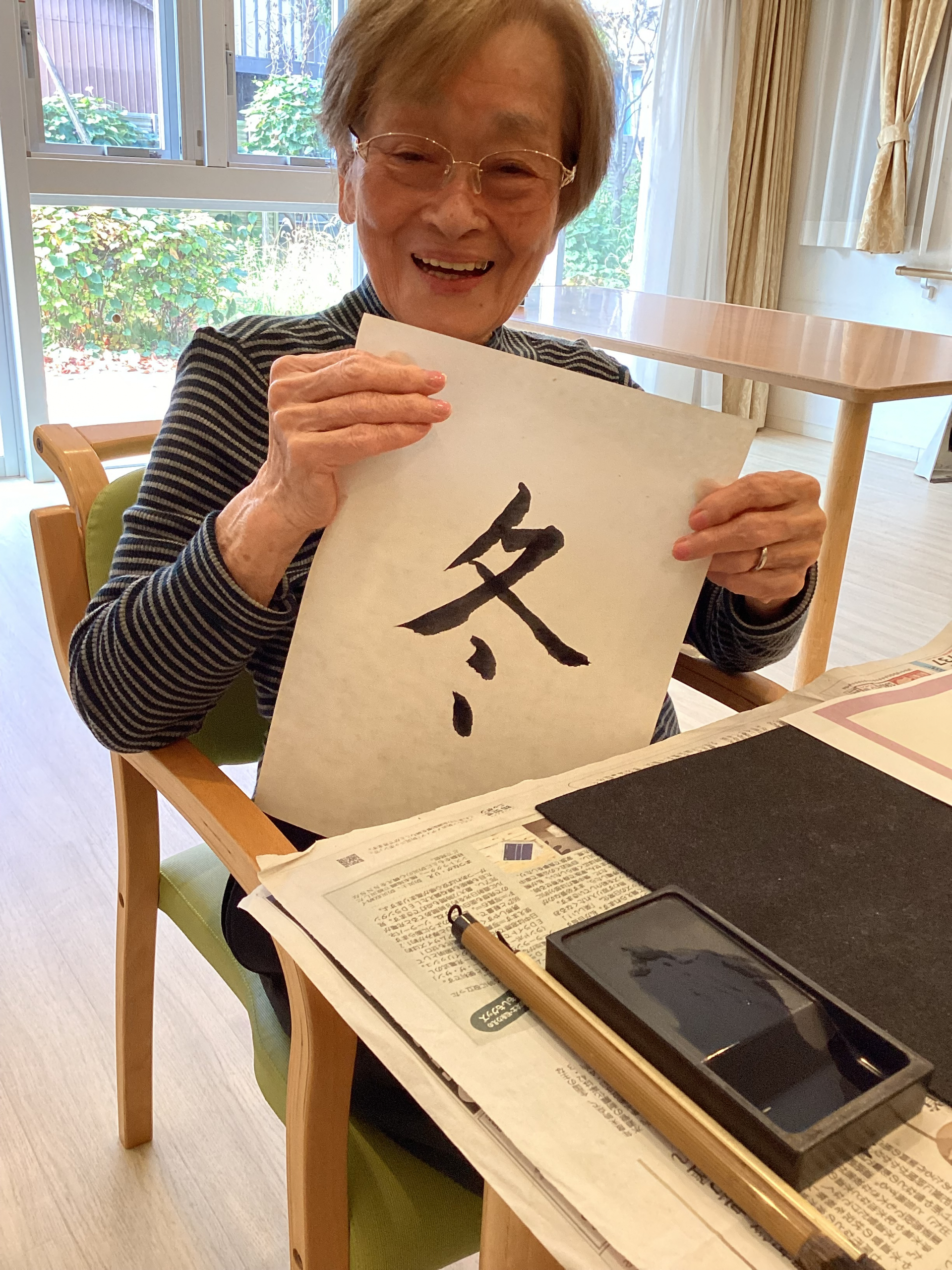 今日は習字レクリエーションをして、『冬』『焼芋』『手袋』など季節の言葉を書いて、みんなで楽しく過ごしました😊