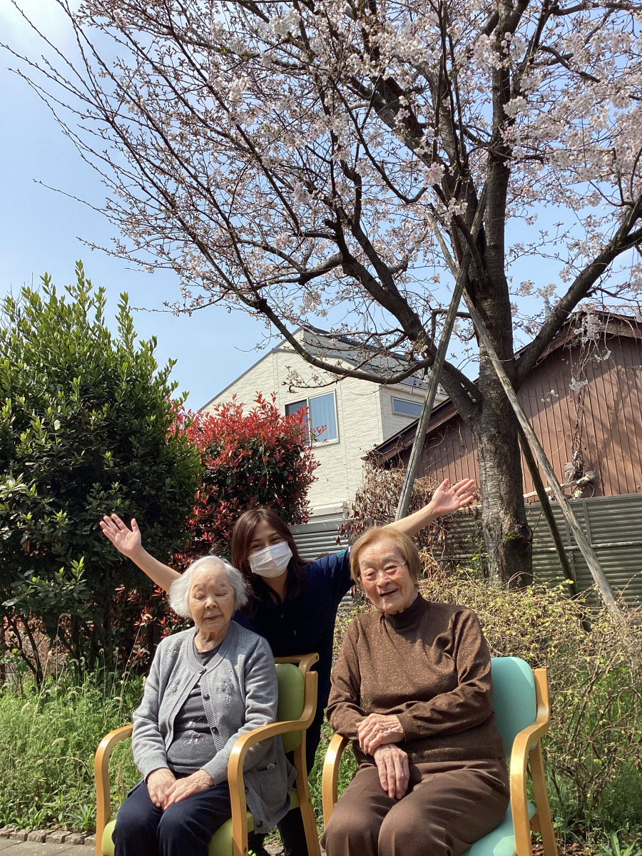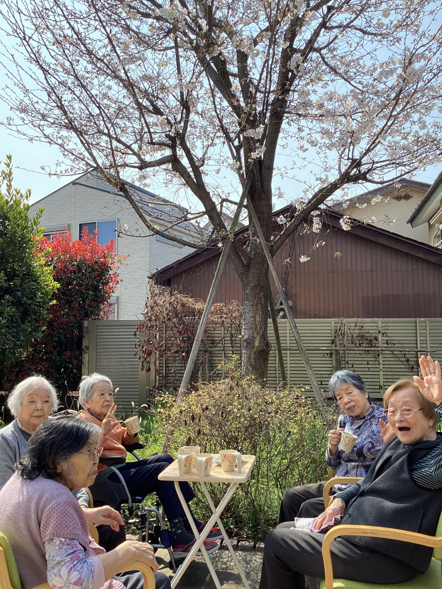 皆で桜の下に集まり、おしゃべりをしながら楽しい時間を過ごしました。