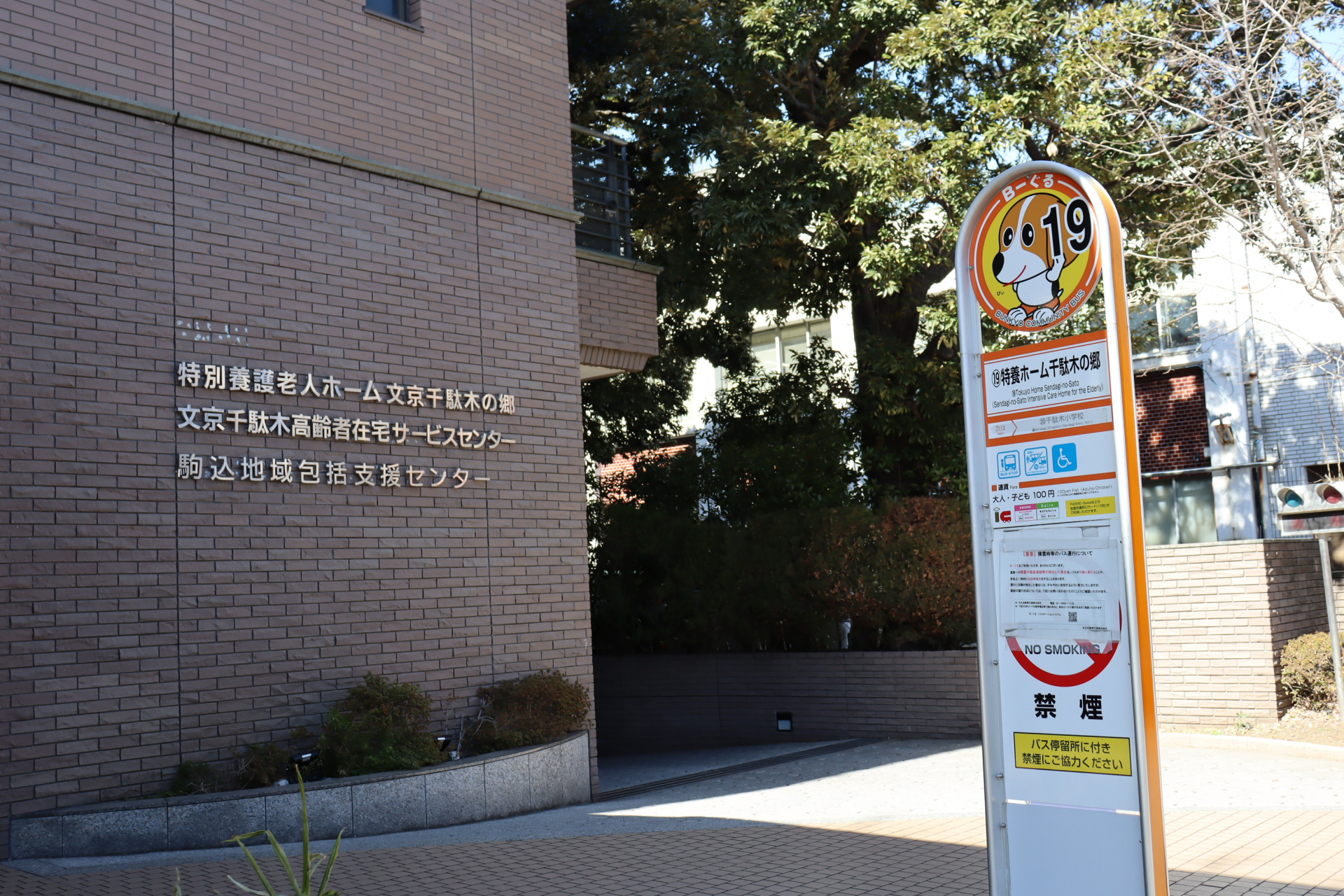 HY_特別養護老人ホーム文京千駄木の郷 施設案内 特別養護老人ホーム文京千駄木の郷は2026年4月より社会福祉法人奉優会での運営が始まります。 私たちはいつのときも皆が支え合い、地域とともに学び合い、「その人らしい、ゆたかな暮らし」を育んでいきます。 施設玄関前 特養ホーム千駄木の郷 バス停