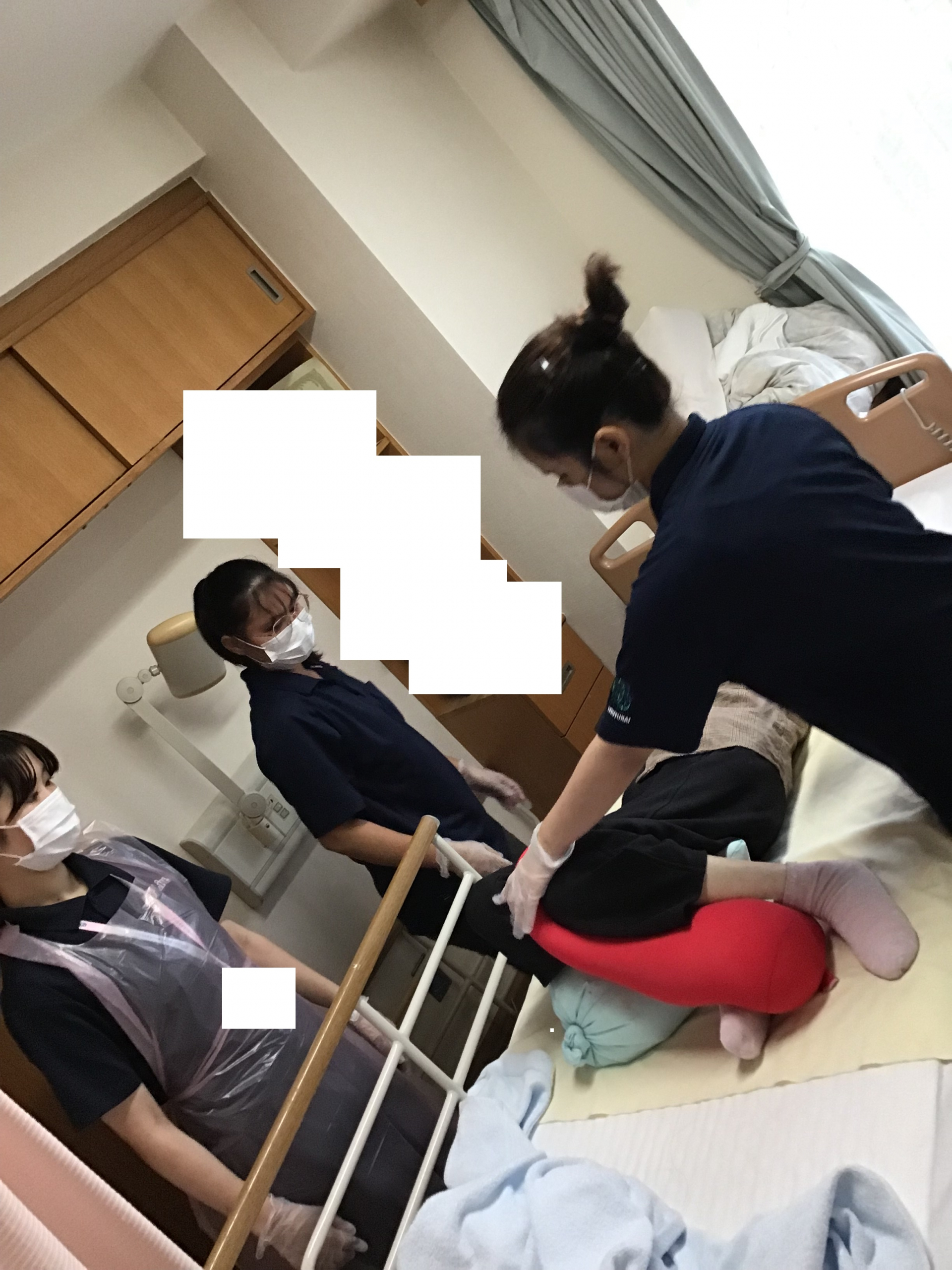一通り説明を聞いた後には、実際に排泄介助入り、再度装着時の注意点をおさらいしたり、正しく装着するためのコツを教えていただきました(^^)