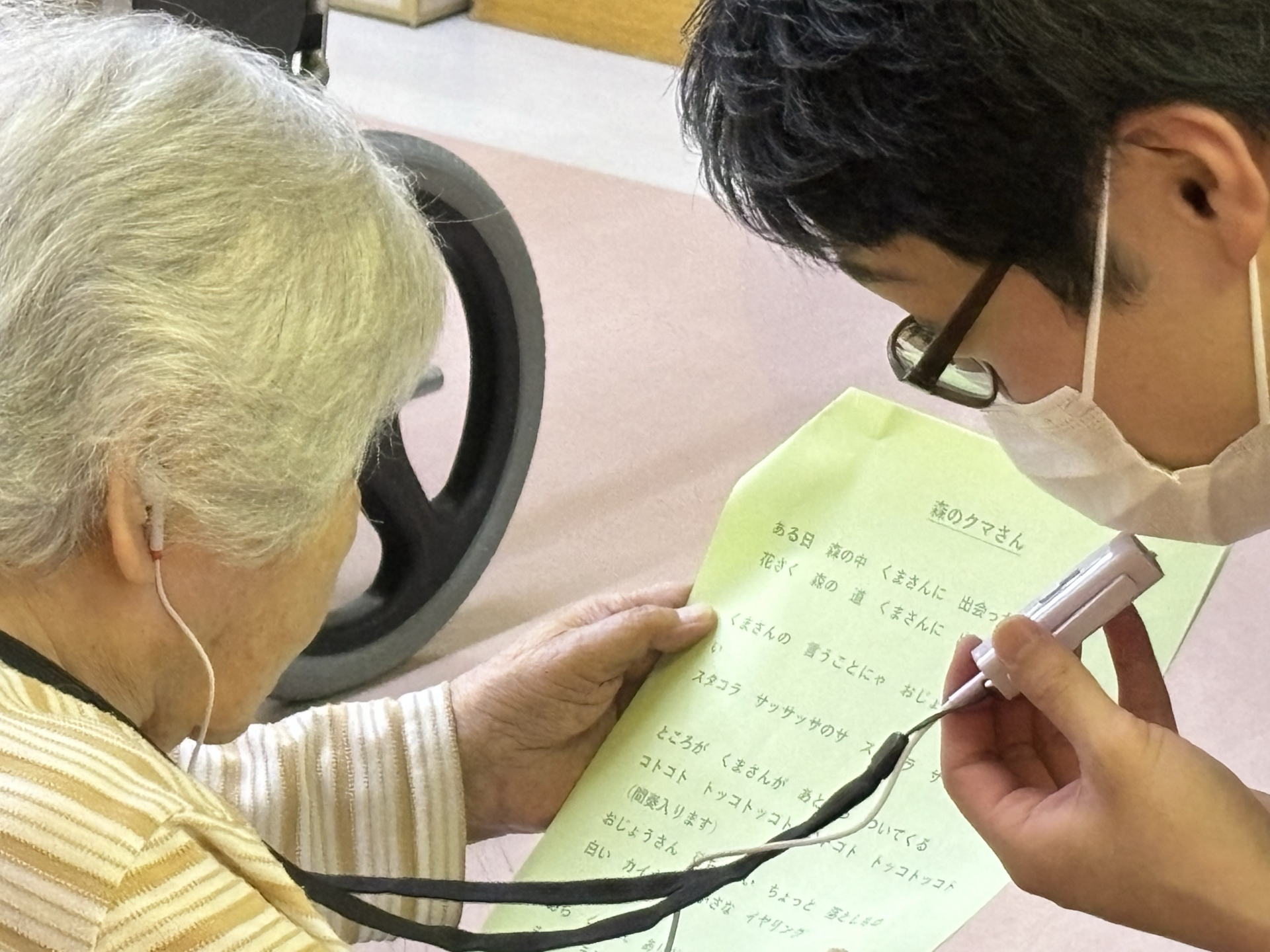 私たちにはおなじみの骨伝導イヤホンですが、利用者様は初体験。不思議そうにされていました( *´艸`)