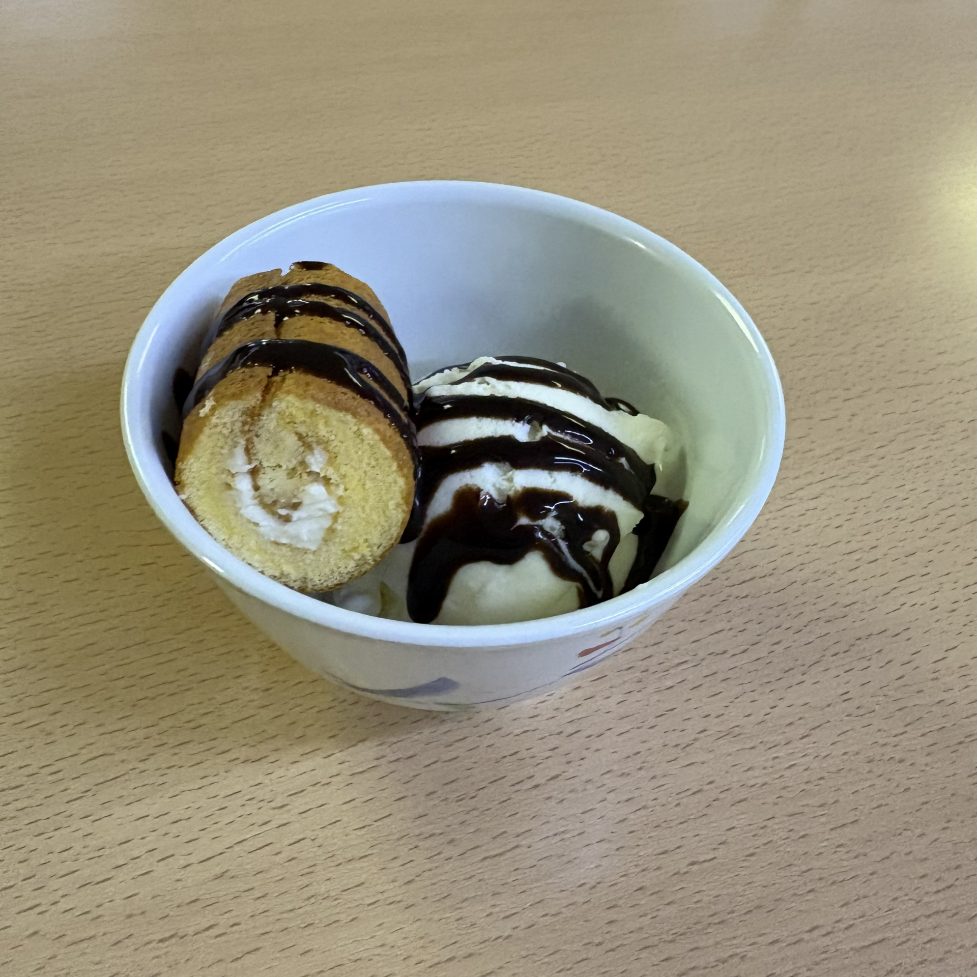 今回のおやつはロールケーキとアイスクリームです!