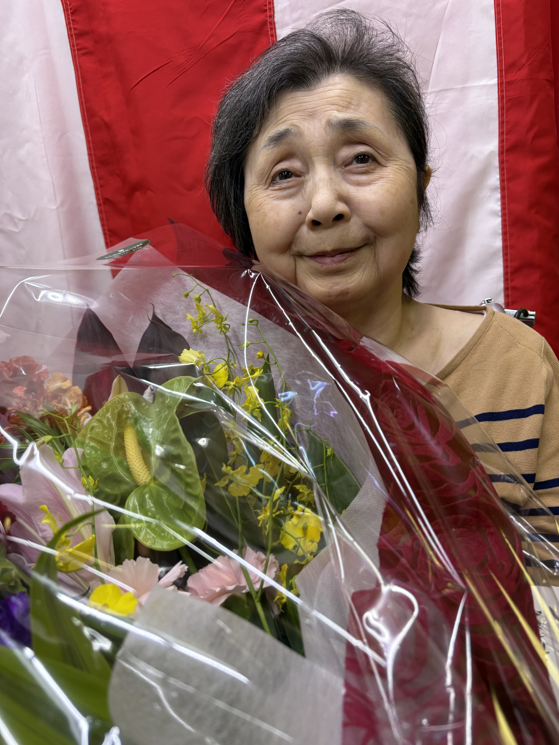 その後は、区長より頂いたお花を手に、記念撮影です!!