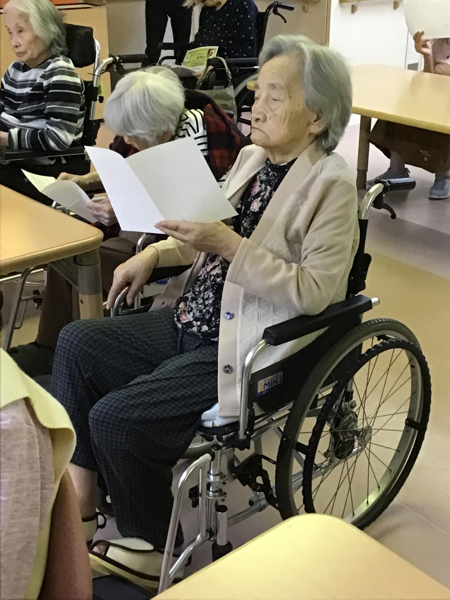 最後は【上を向いて歩こう】を歌詞カードを持って一緒に歌い、知っている方歌詞カードなしで歌っている姿を見て