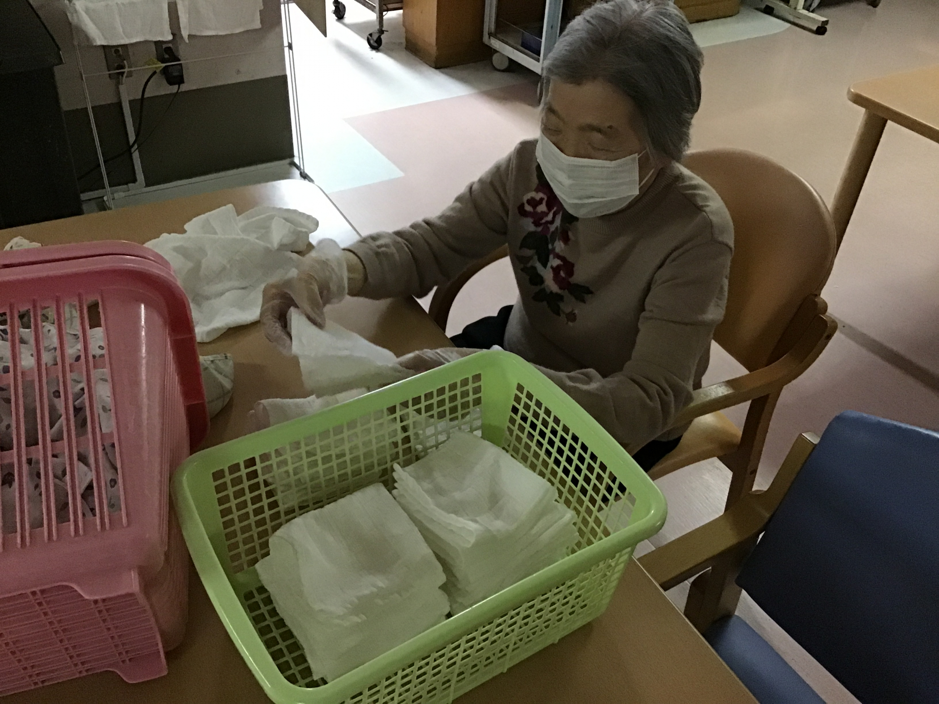 夜、職員が洗濯物をたたんでいると「手伝いましょうか」とおっしゃり、手伝ってくださったT様。