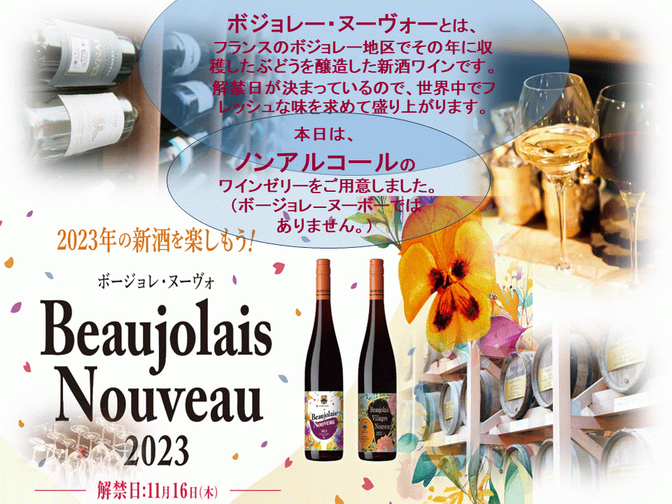 本日は、ボジョレーヌーボー解禁日とのことで、ワインゼリーを提供しました!