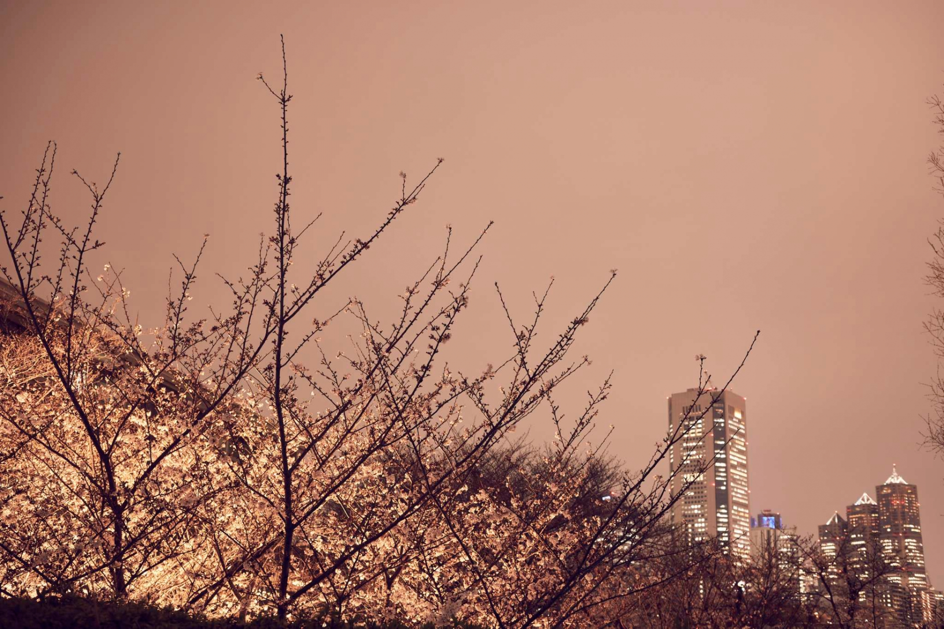 当初の予定だった3月28日から延期されており、ライトアップの日も満開にはなりませんでしたが、
