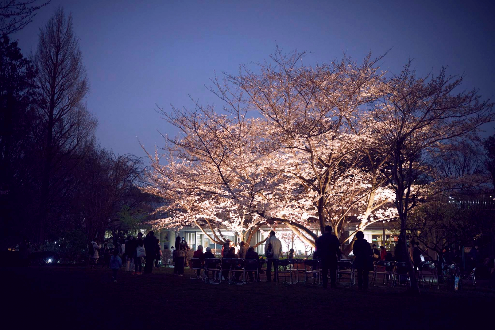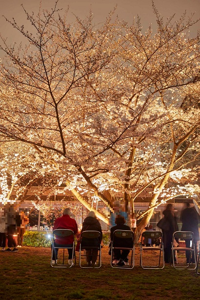 肌寒い夜でしたが、美しい桜の下での交流にぬくもりが感じられます。