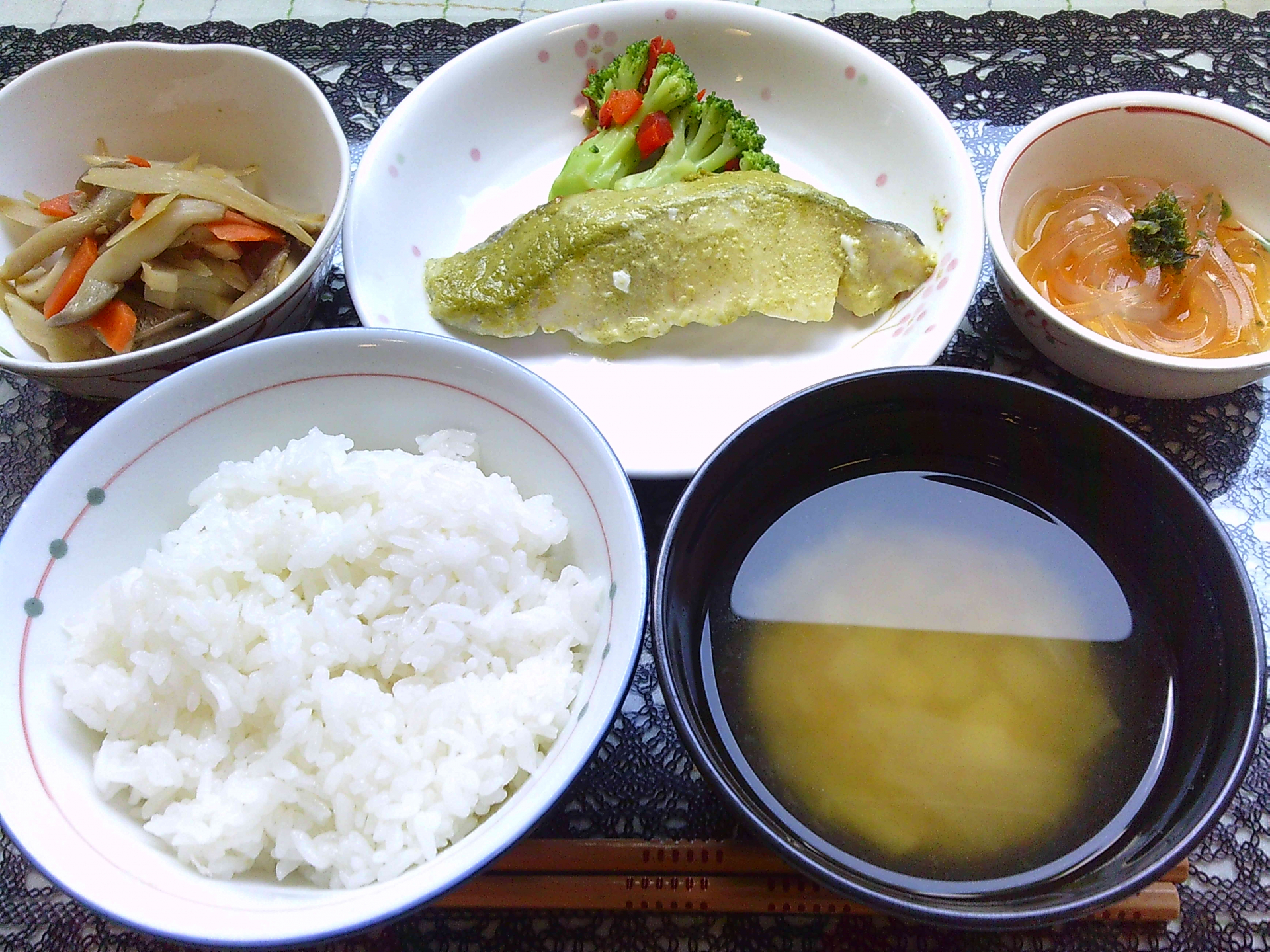 本日は、白身魚の抹茶マヨネーズ焼きとして提供しました。