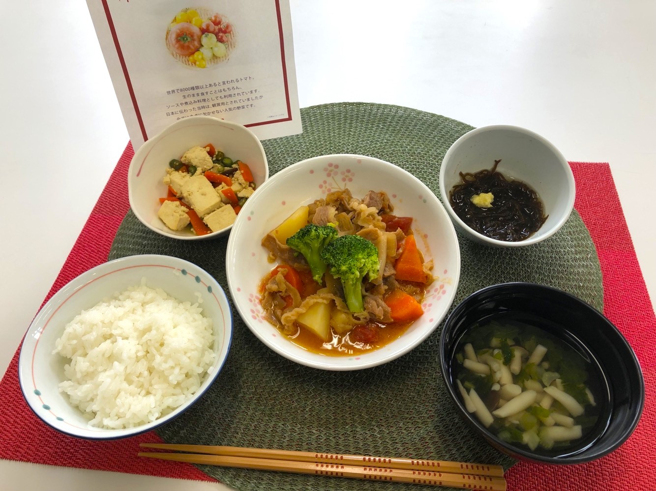 先日、食育メニューの日に、夏に特に美味しいトマトを使用した料理を提供しました。