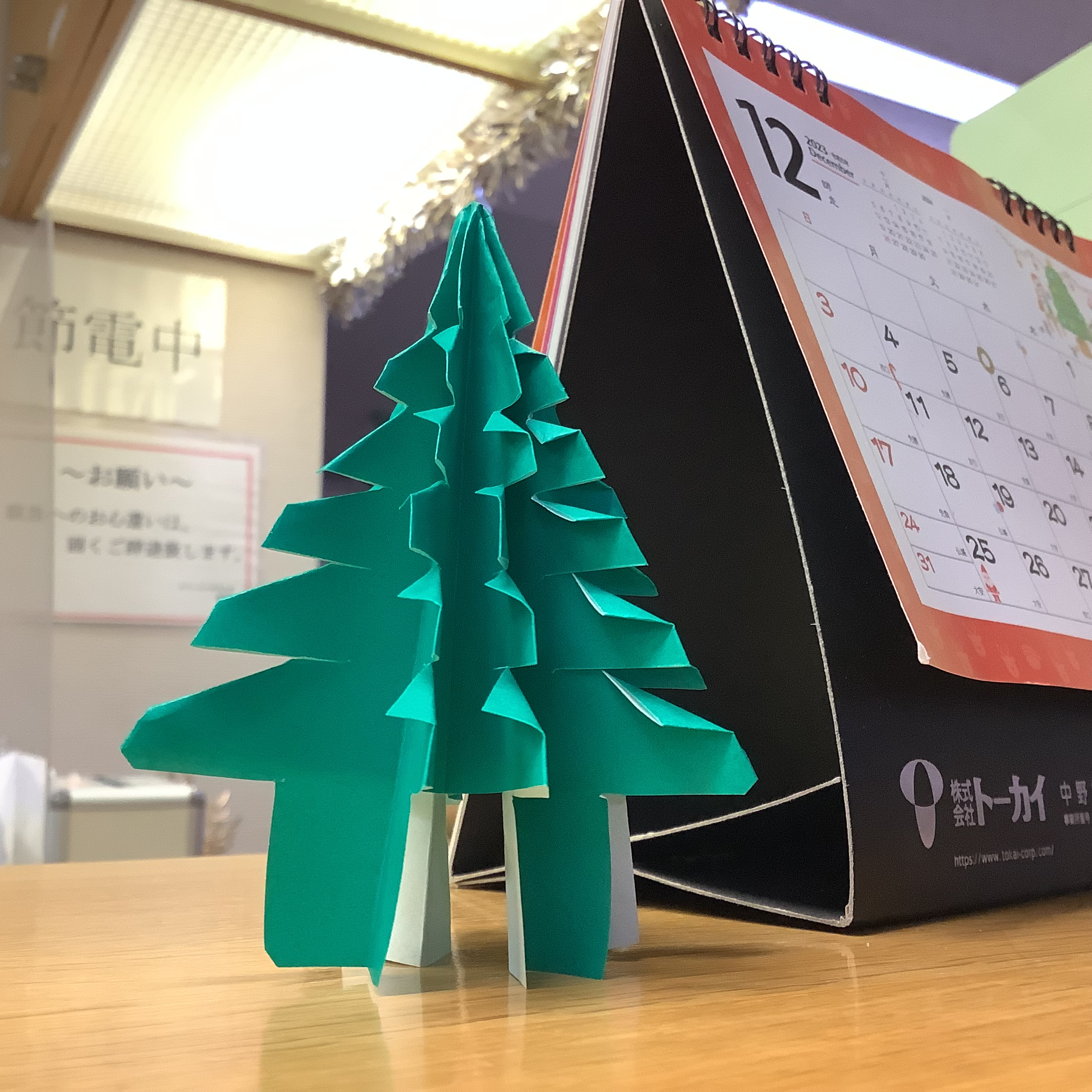 ご入居者様に教えて頂いて職員が折った「もみの木」をステーションに飾らせて頂き、