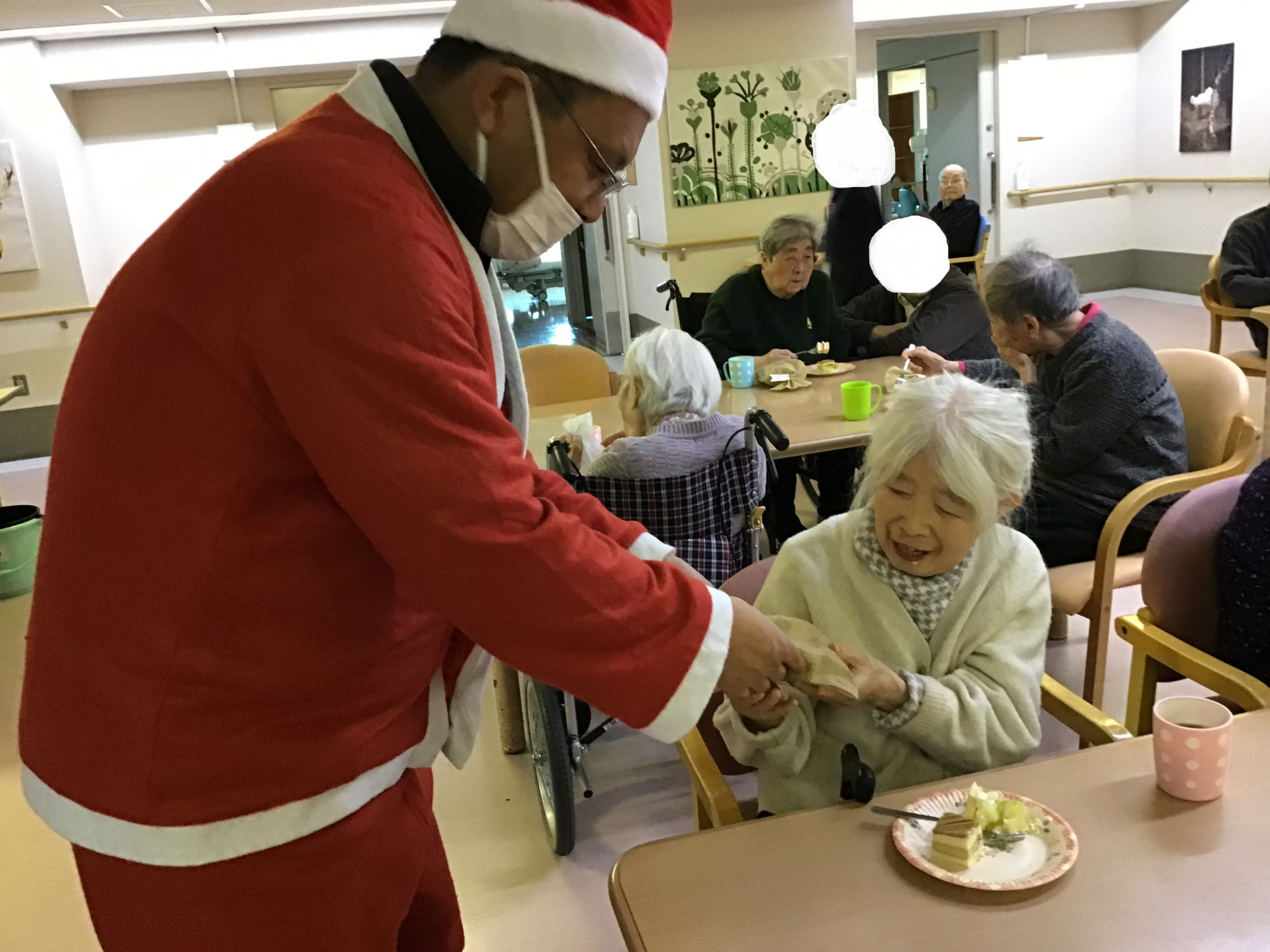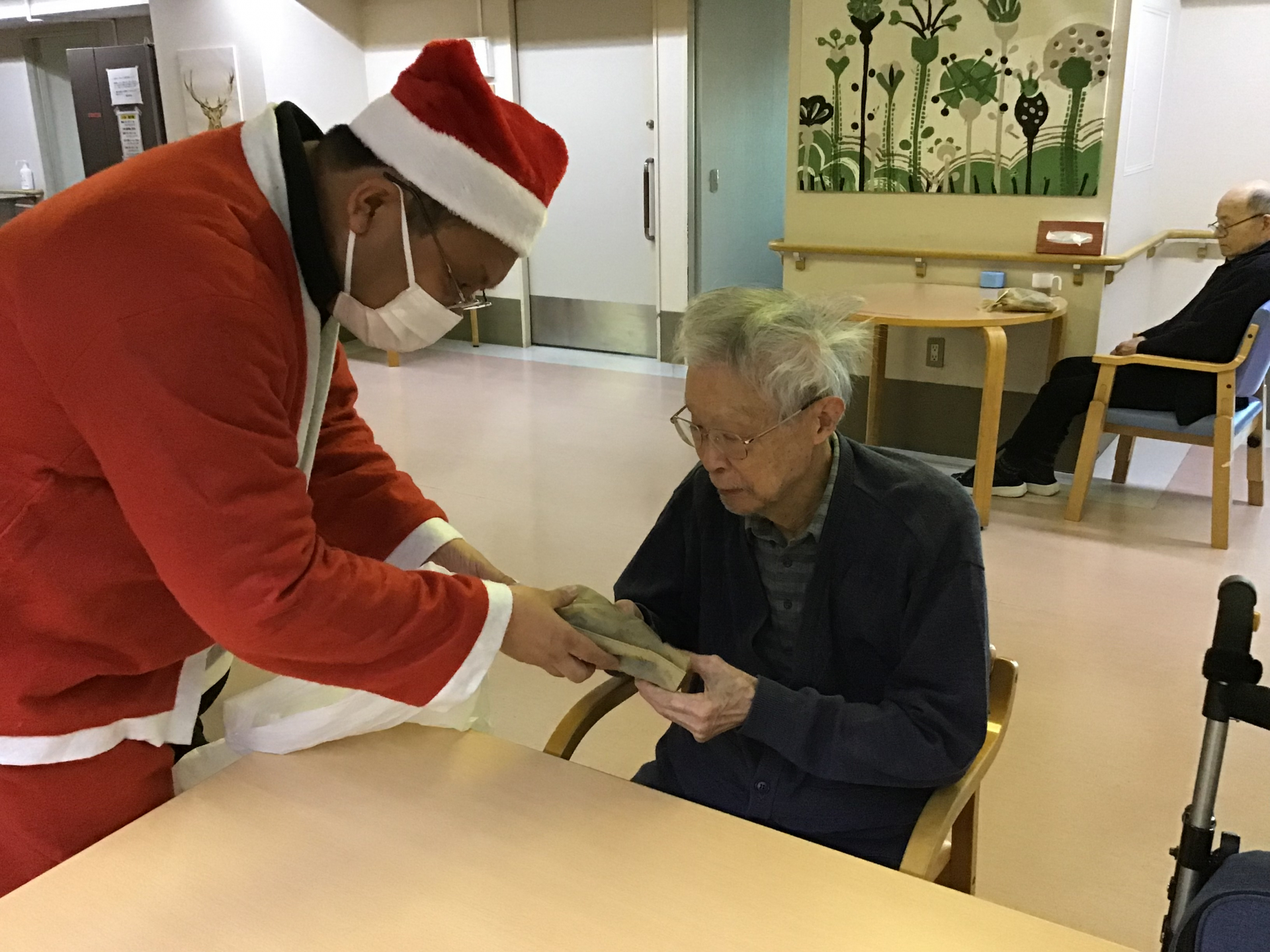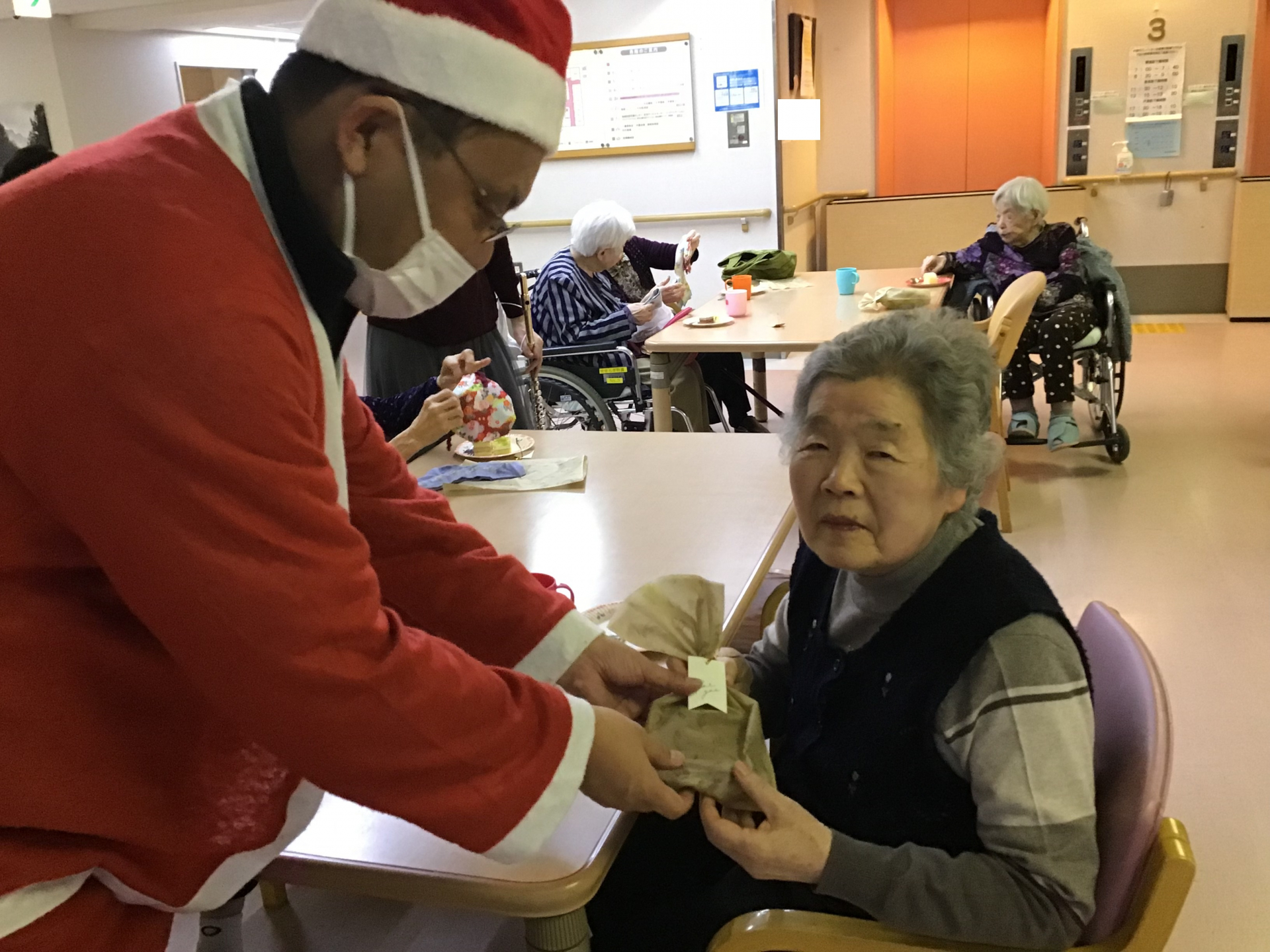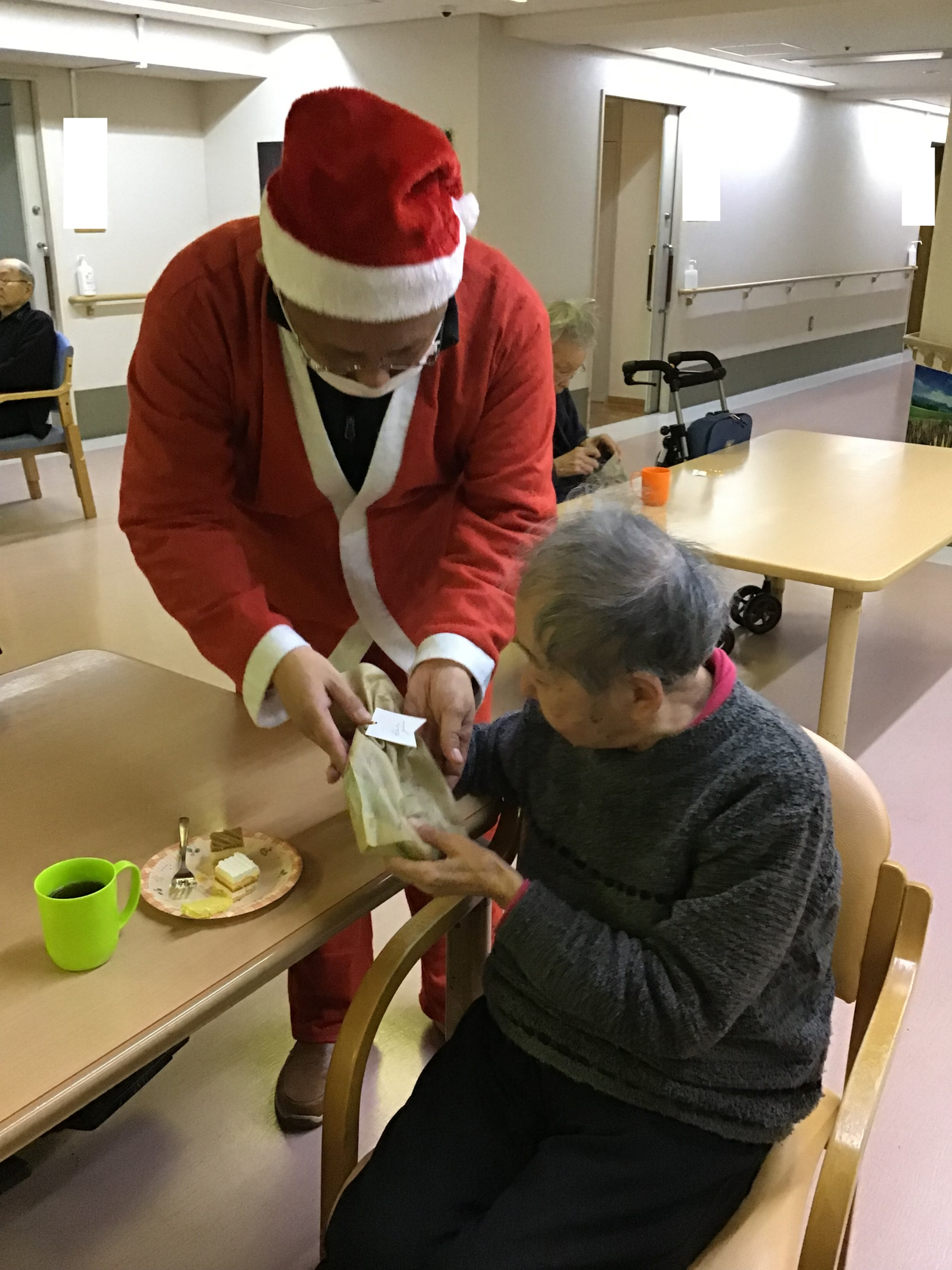 そしてクリスマスソングを楽しんだ後には、みなさまお待ちかねのサンタさんがプレゼントを持って来てくれました!!