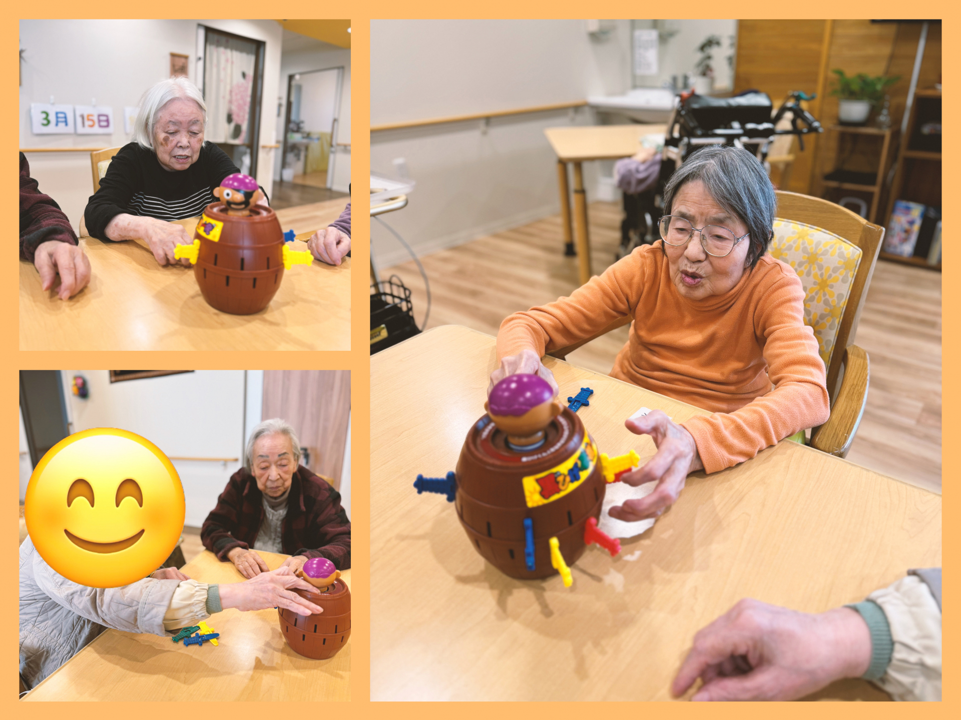 2024.03.15 活動報告 黒ひげ危機一発ゲーム Tweet シェアする 今日は黒ひげ危機一発のゲームをしました。👵👵🏻👵🏼 飛び出すとびっくりして笑っていました。😄😁 介護課 アリ 前の記事 2024.03.17 活動報告 2丁目 散歩 次の記事 2024.03.14 活動報告 ミニカラオケ大会 一覧へ戻る