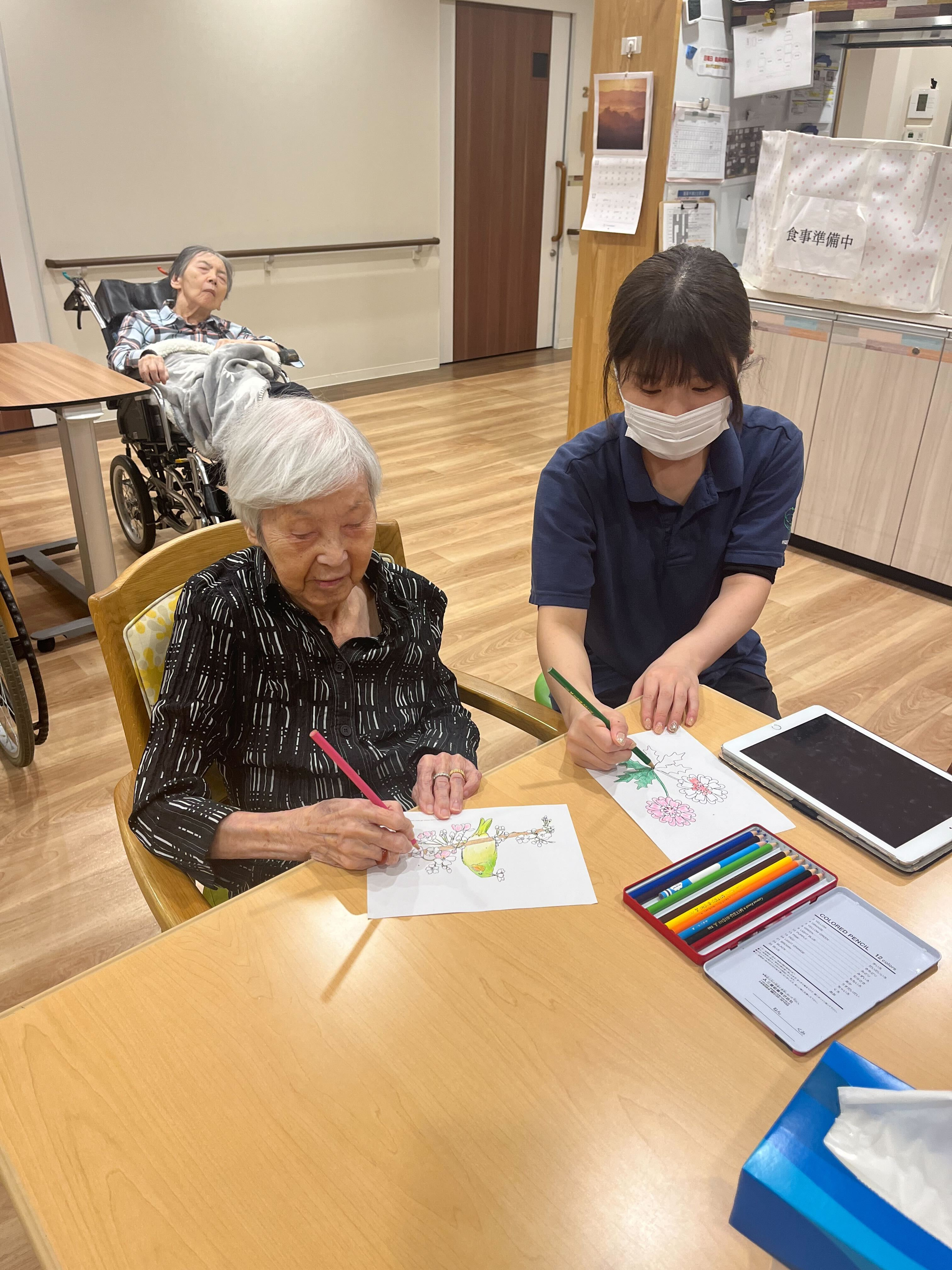 2023.12.13 活動報告 午後のひととき Tweet シェアする こんにちは。12月も中旬になって、寒くなりましたね。 下馬の家の今日の午後のひとときです。体操をしたり、ゆったりと塗り絵をしたり(o^―^o)ニコ 穏やかな時間を過ごされています♪ 支援課 吉田 前の記事 2023.12.15 活動報告 本日の夕食は♪ 次の記事 2023.12.11 活動報告 4丁目 折り紙 一覧へ戻る