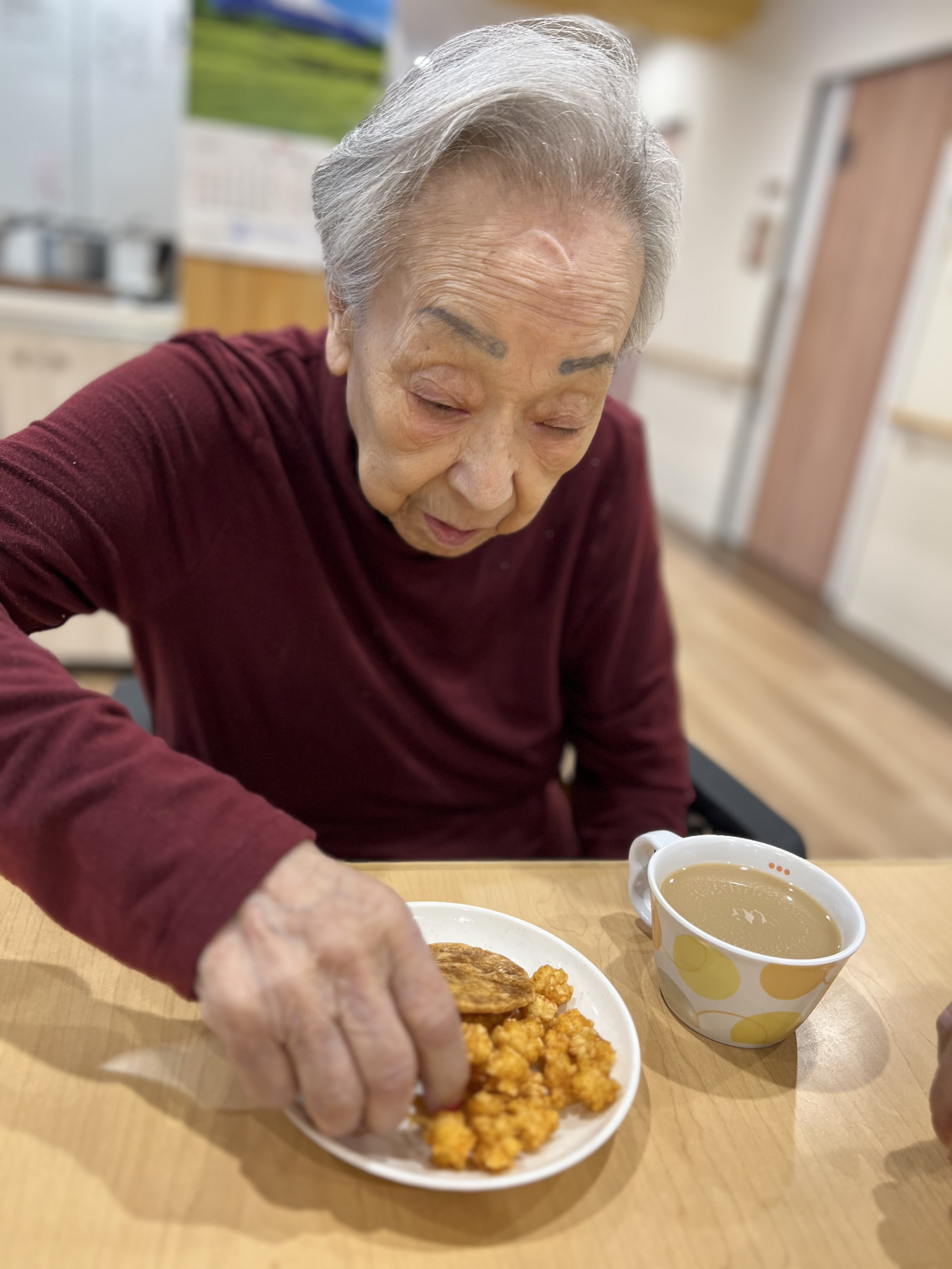 2025.06.15 特別養護老人ホーム 3丁目(おやつタイム) Tweet シェアする ~おやつの時間~ #皆様一緒におやつを食べて頂く。 下馬の家 メッシナ 前の記事 2025.06.19 特別養護老人ホーム 折り紙 次の記事 2025.06.13 特別養護老人ホーム 2丁目(散歩) 一覧へ戻る