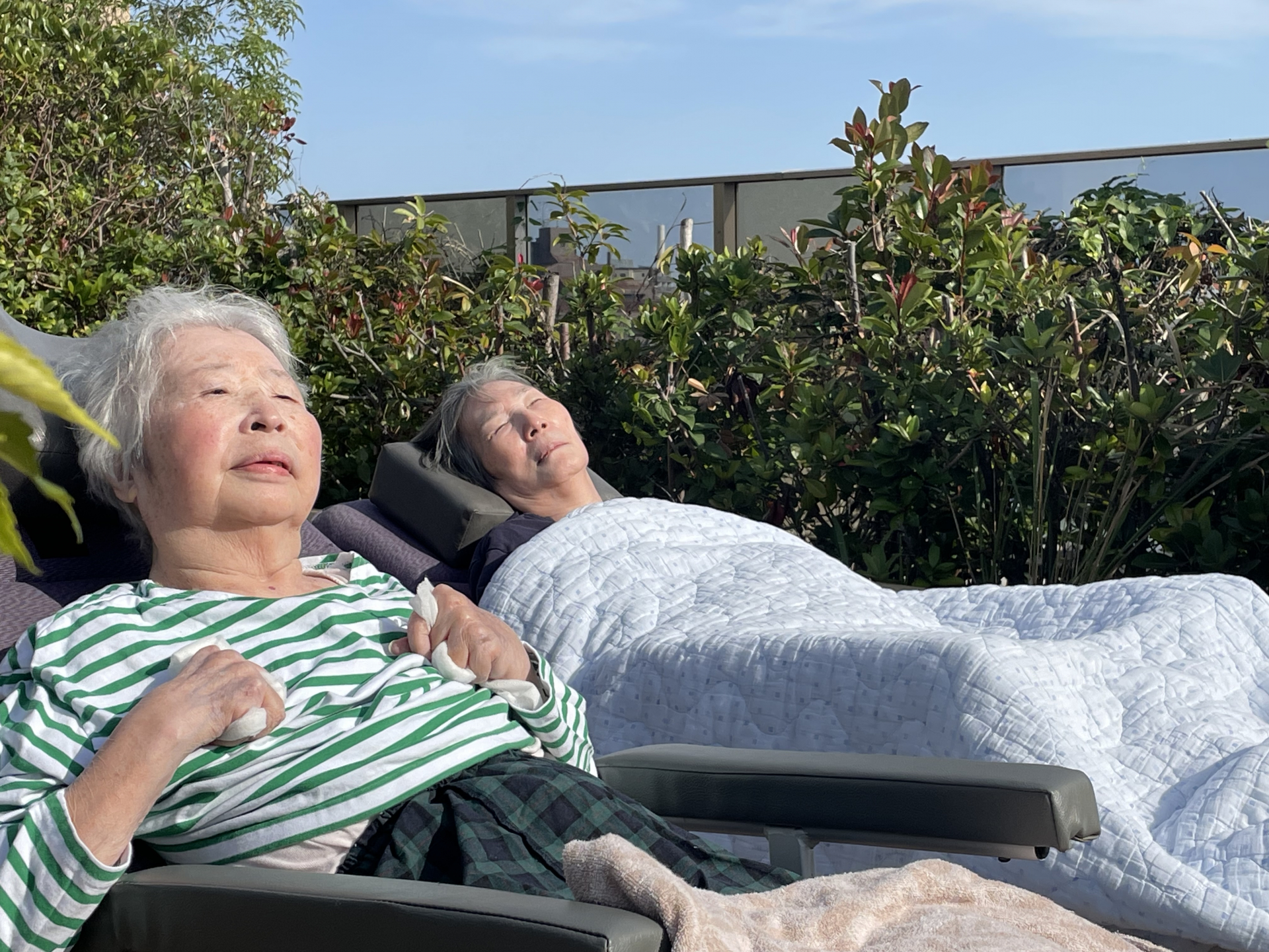 2025.11.07 活動報告 【2丁目ユニット】今日はポカポカ陽気なので、外気浴しました。 Tweet シェアする 今日は日差しが暖かく、気持ちのよい外気浴を行いました。 お二人とも穏やかな表情で、ゆったりとした時間を過ごしました。 2丁目ユニット 介護職員 荻野 前の記事 2025.11.07 活動報告 【2丁目ユニット】小さな仲間がやってきました 次の記事 2025.11.03 活動報告 3丁目(散歩) 一覧へ戻る