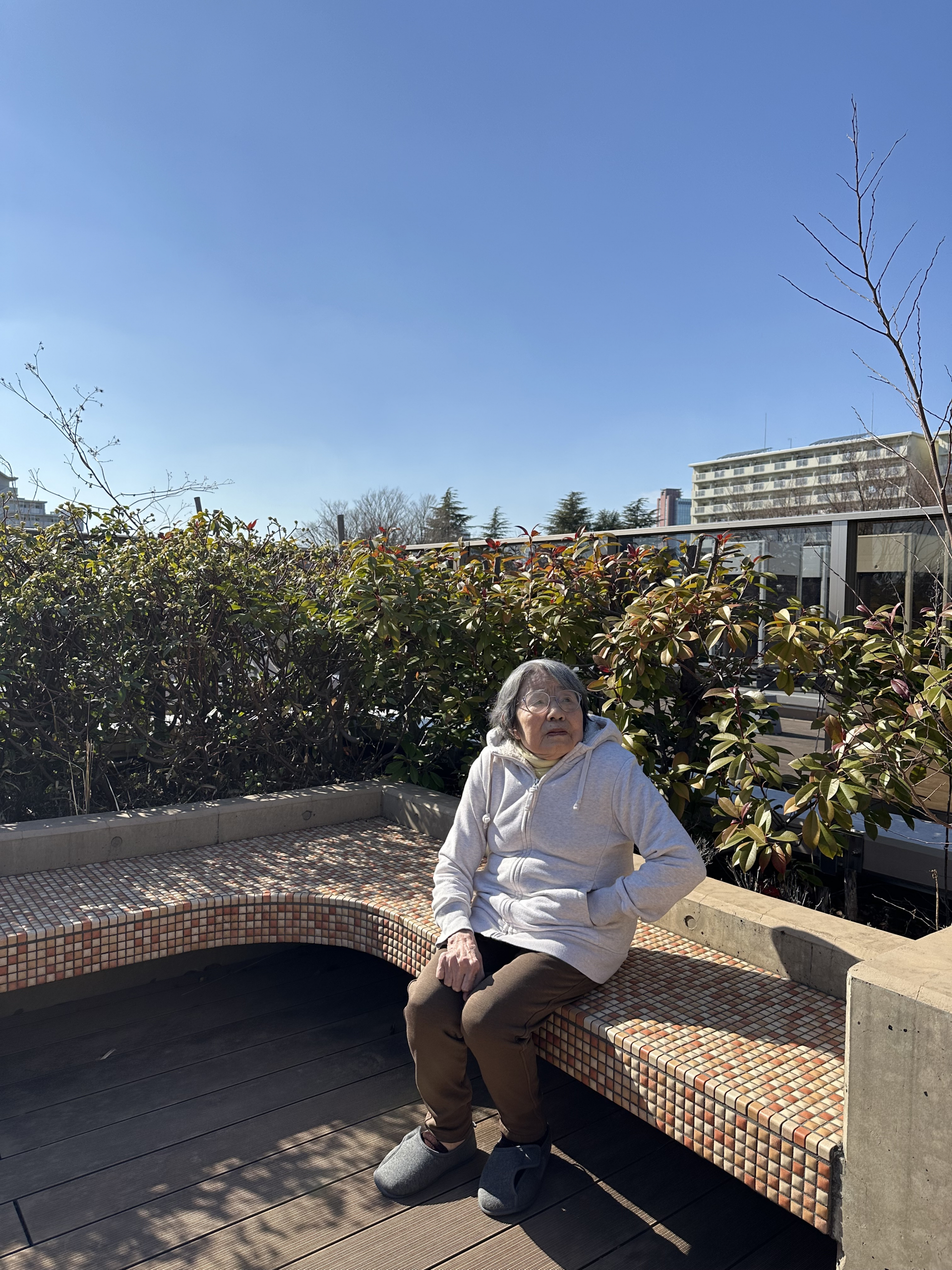 午後になると、気分転換に屋上へ散歩に行きます。 やわらかい風を感じながら景色を眺める時間が、何よりの楽しみです。😊
