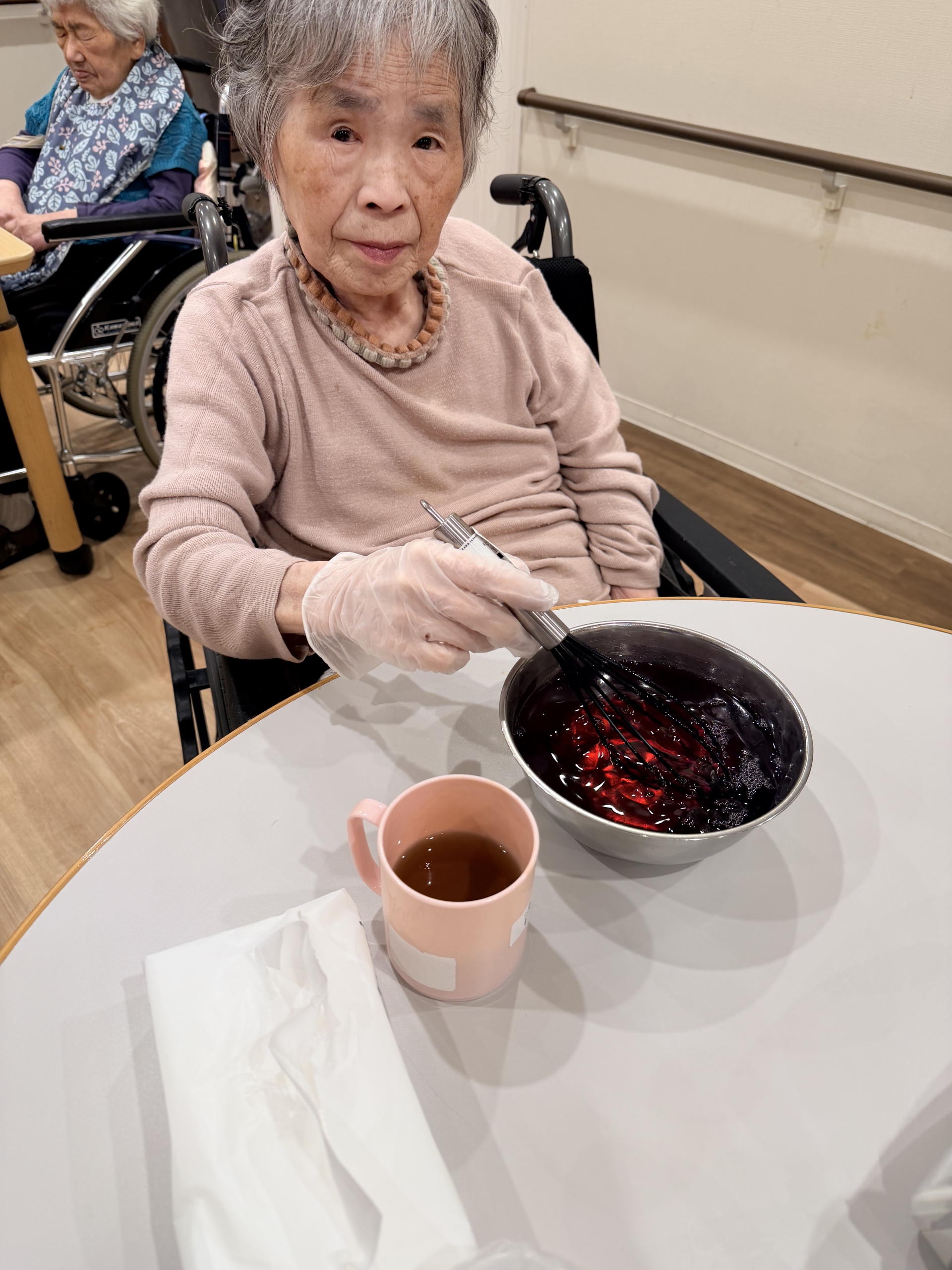 2026.03.01 活動報告 【2丁目】葡萄ゼリー作り Tweet シェアする 本日はゼリーの粉が余っていたので、ゼリー作り。 みんなで協力して作ります 介護課 2丁目 荻野 前の記事 2026.03.12 活動報告 【4丁目】一足早い春のお花見 次の記事 2026.03.01 活動報告 【2丁目】外気浴行いました 一覧へ戻る