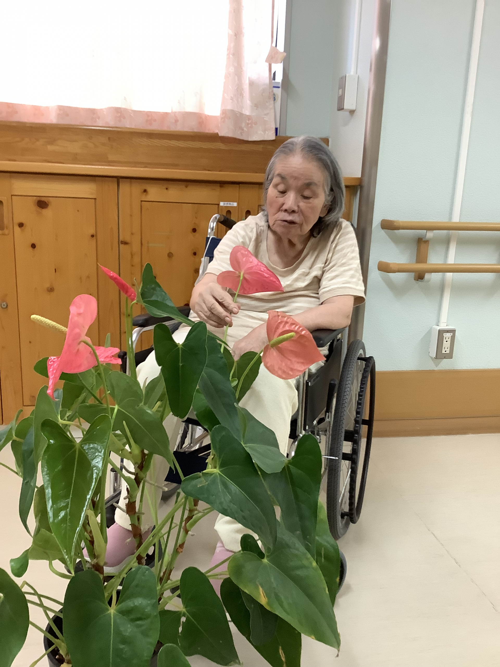 「お花が綺麗ね、赤色が好きなの」と笑顔が見られました。
