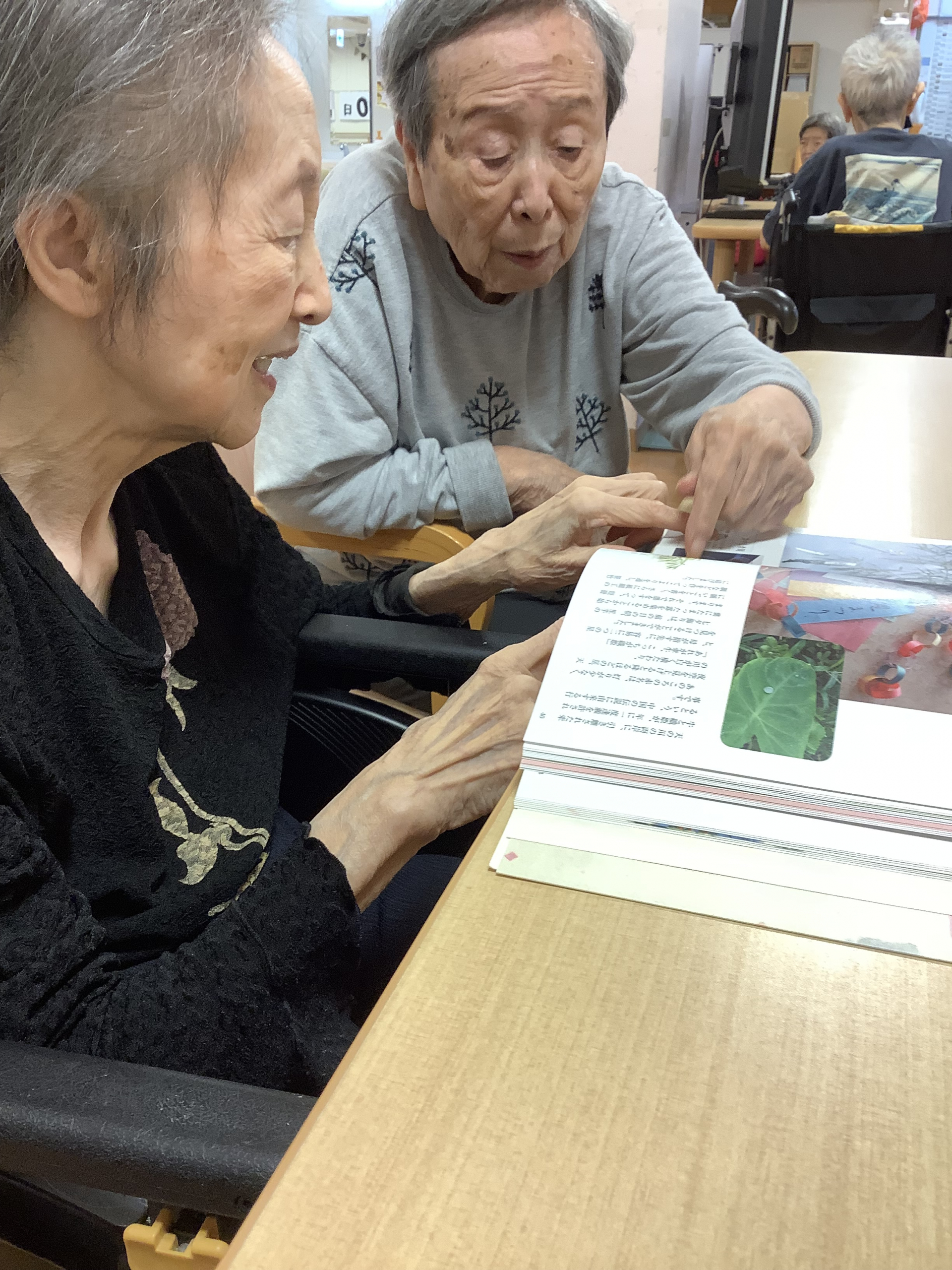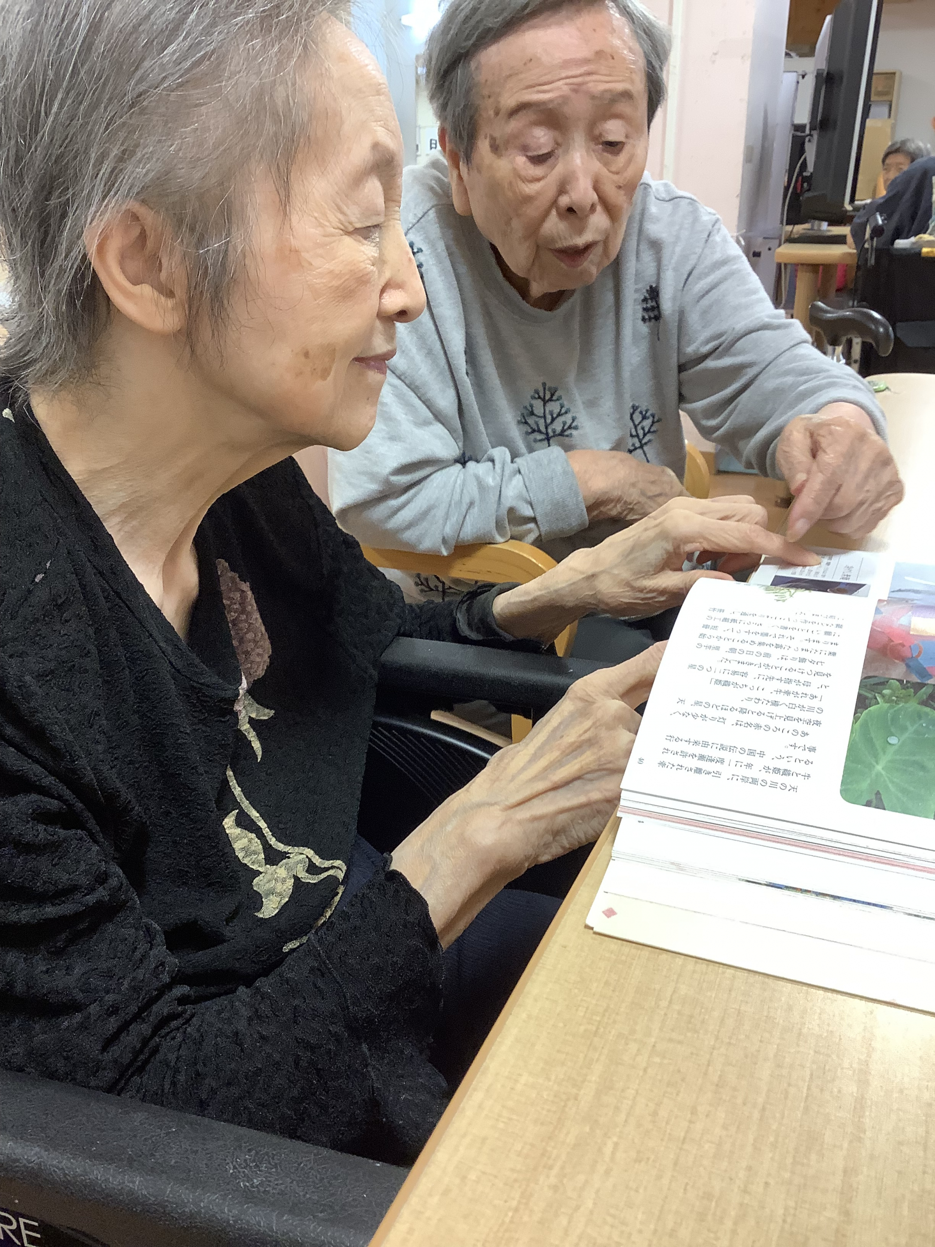 入居者様はとても楽しみにしています。みんなで集まって一緒に七夕の飾り付けのお話しをしている姿です。