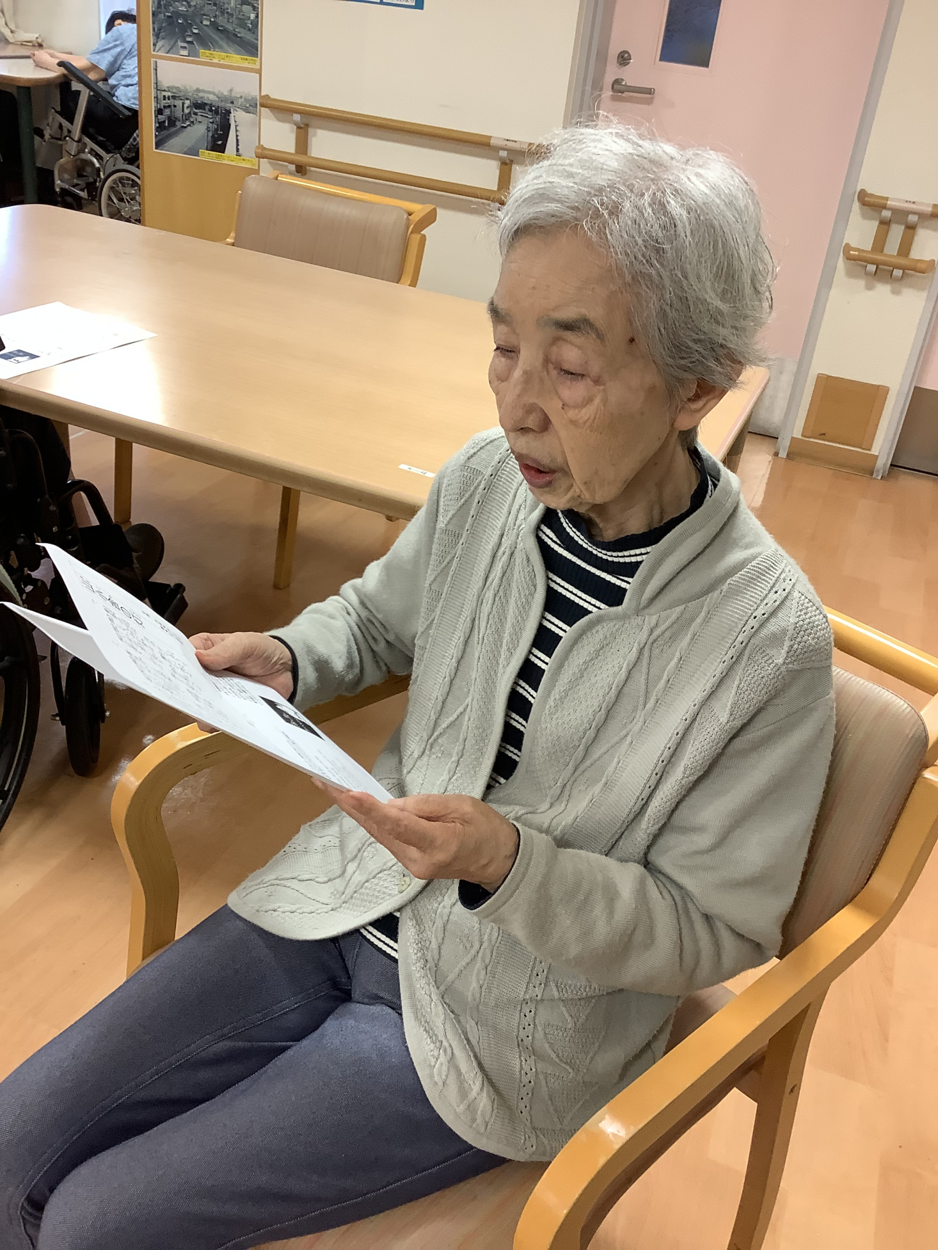 本日は音楽療法の時間があり、音楽の先生とご入居者様で一緒に歌を聞いたり歌われておりました♪