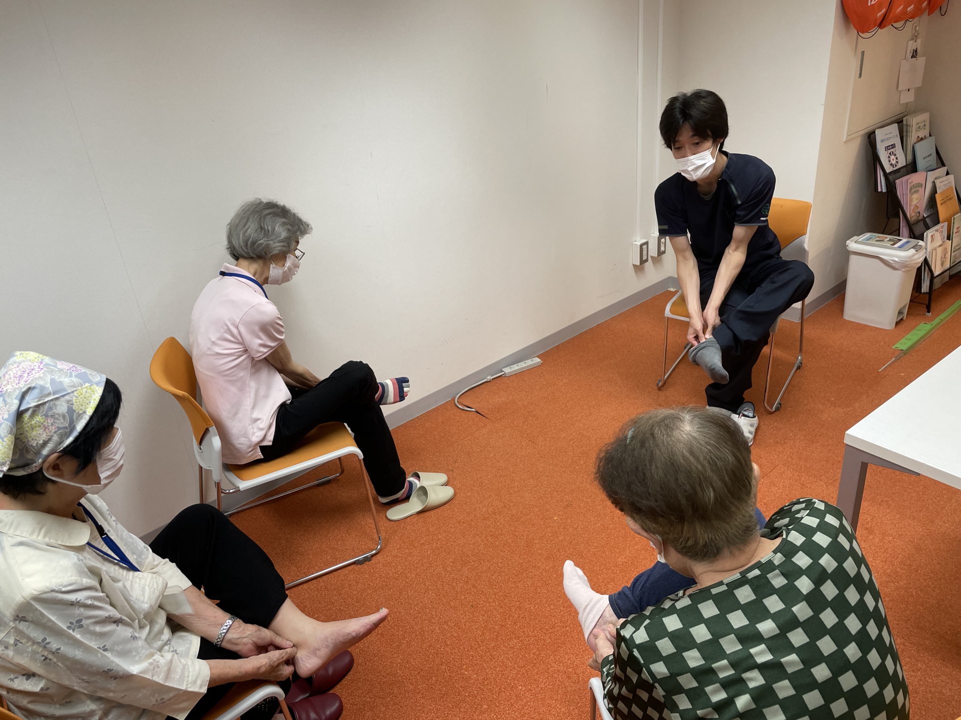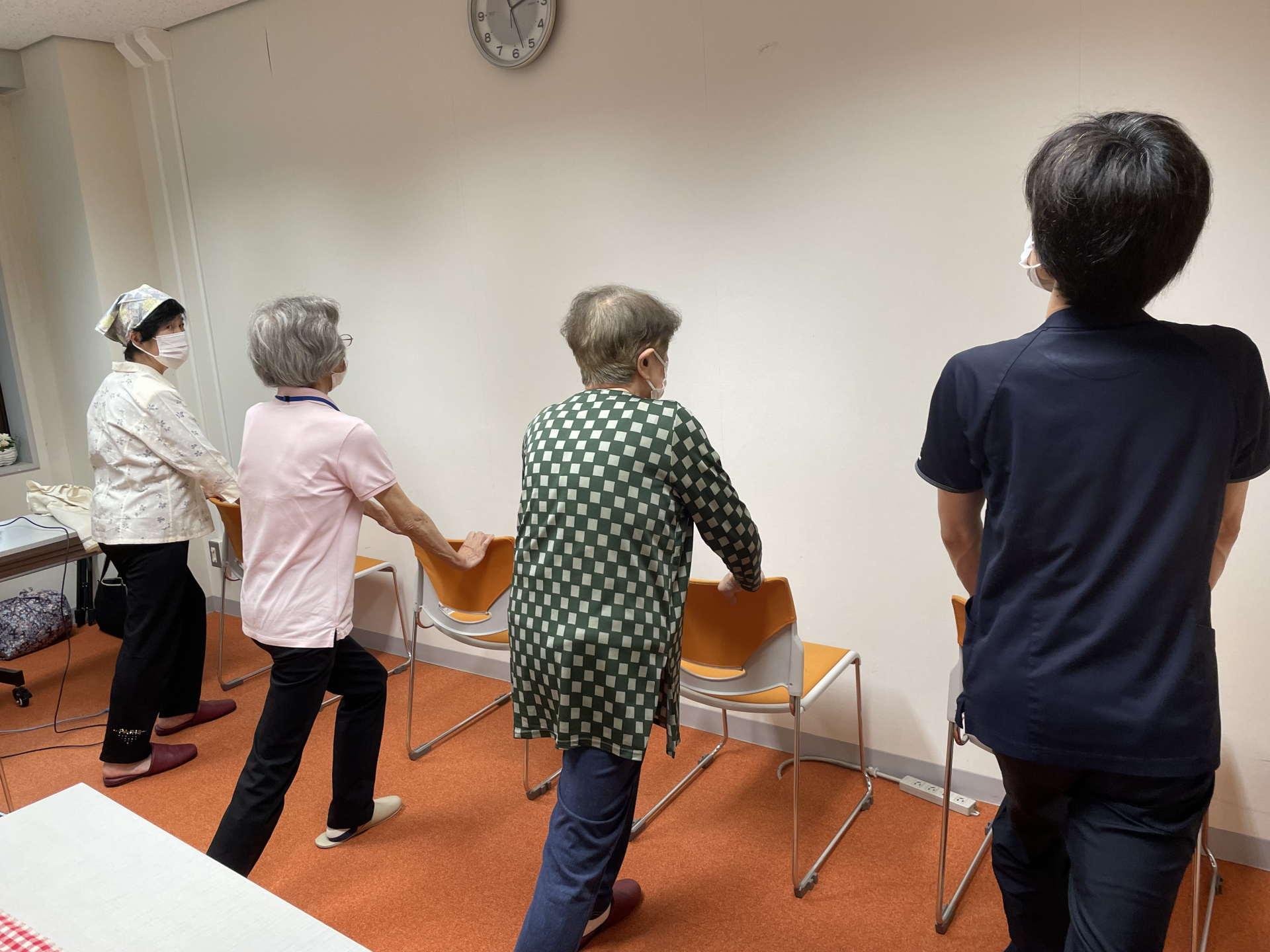 施設職員の理学療法士による、自宅でも出来る簡単なストレッチ体操を体験してもらいました。