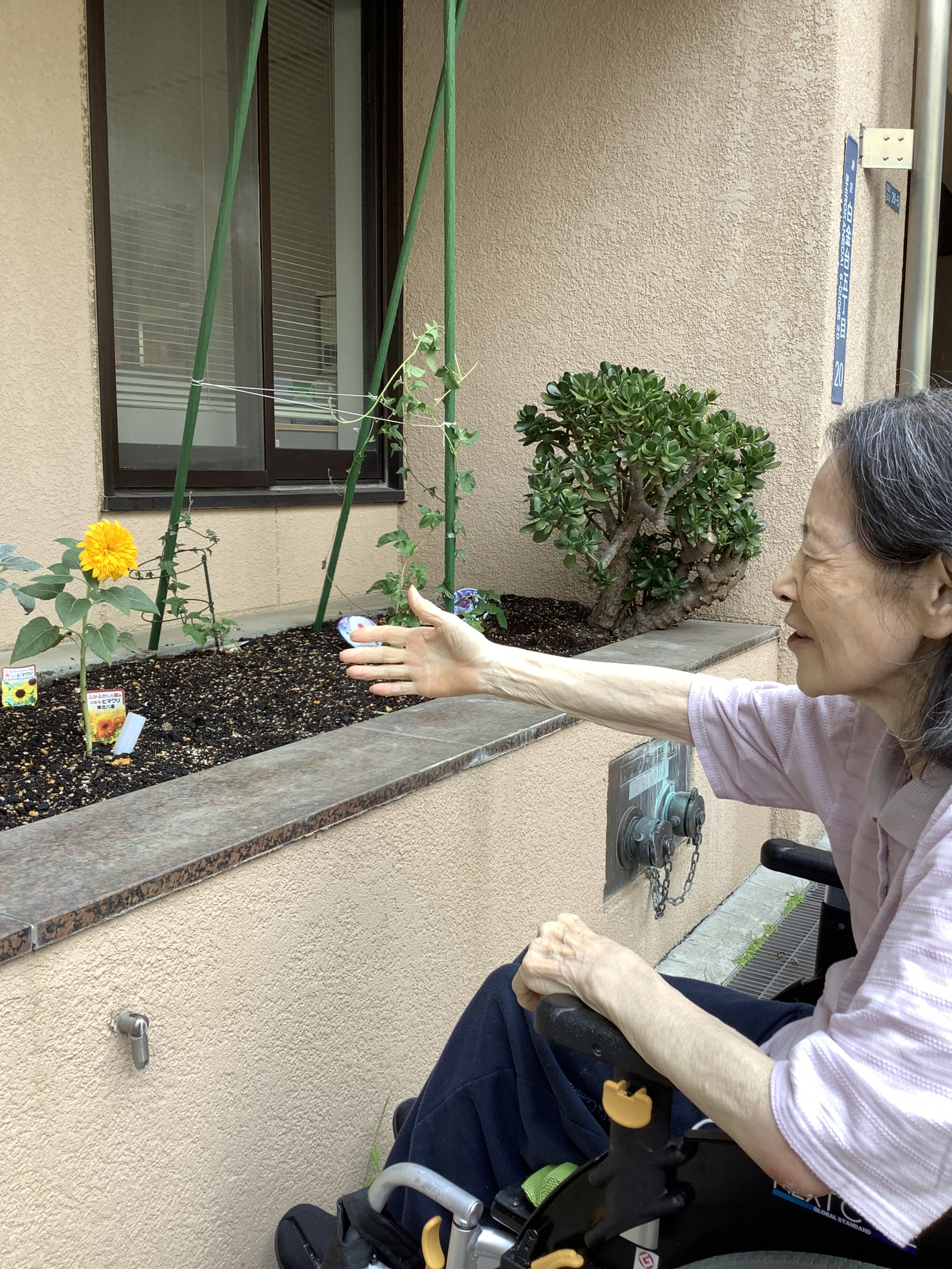 ご入居者様はひまわりを見る時に笑顔を浮かべながら「輝いてるねー、きれいだね」と仰っていました。