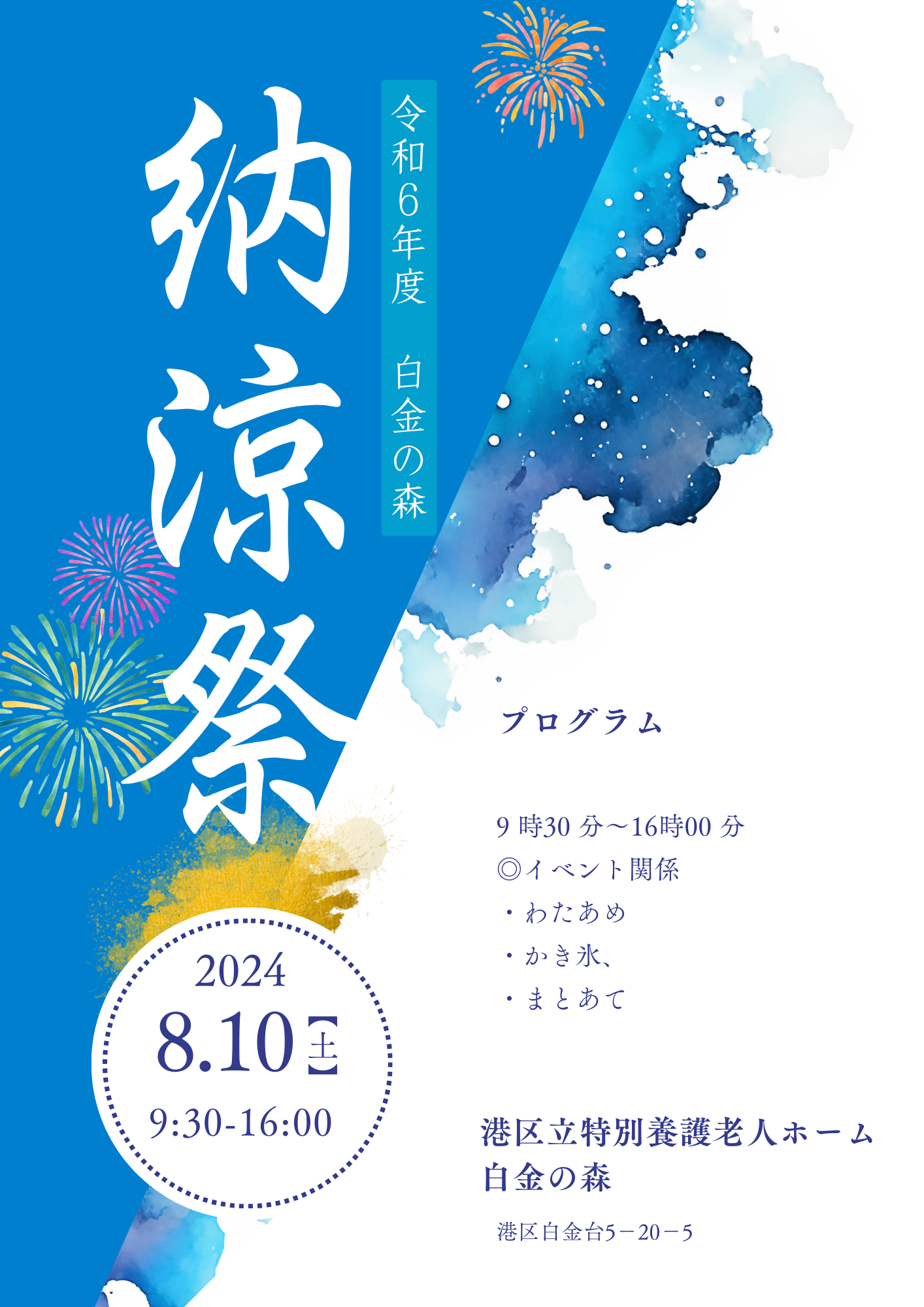 特別養護老人ホーム白金の森では、今年も納涼祭を開催いたします。