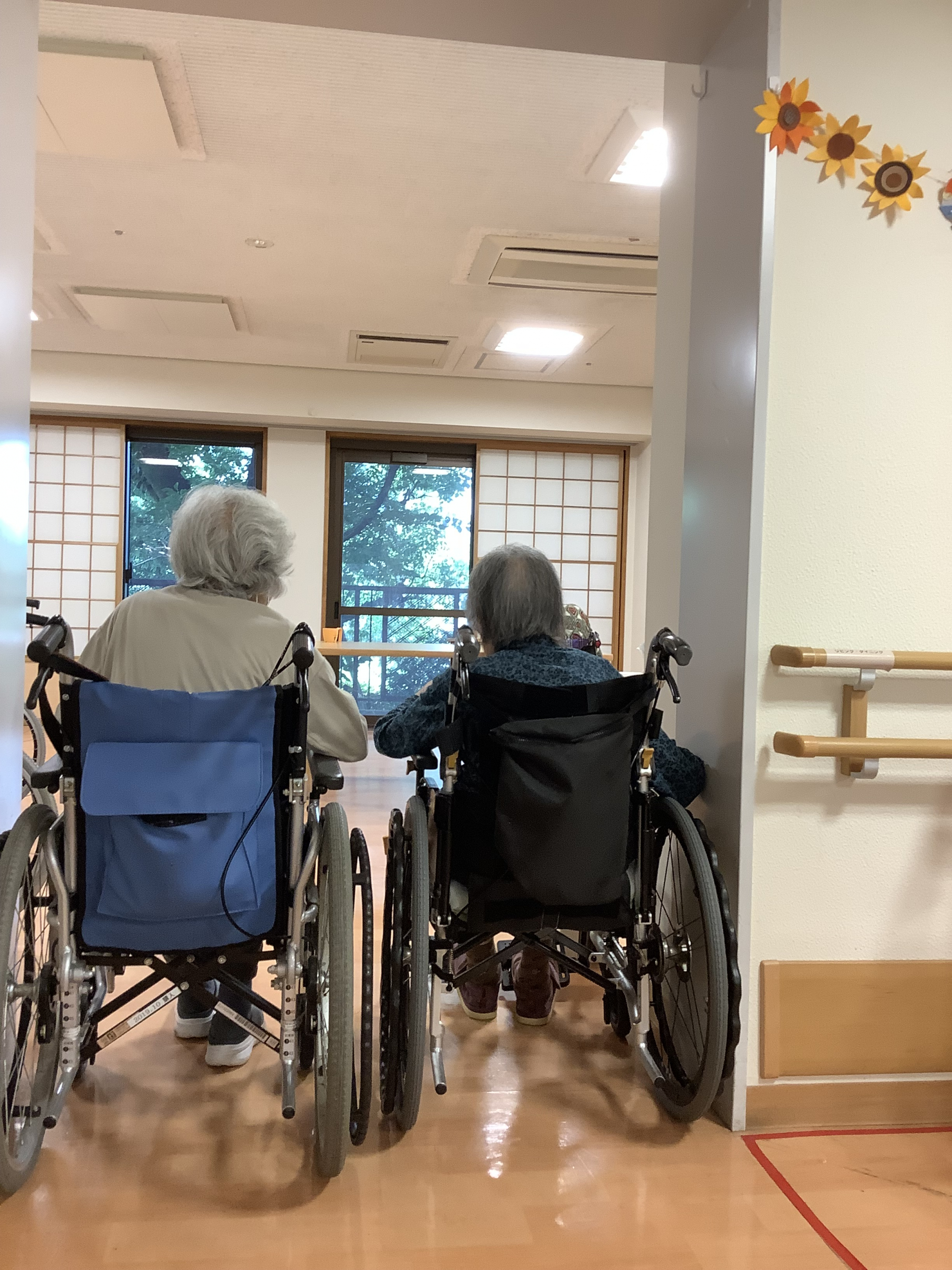 本日は仲の良い利用者様2人とお話しながら日光浴をしました。天気がいいのは良いですね
