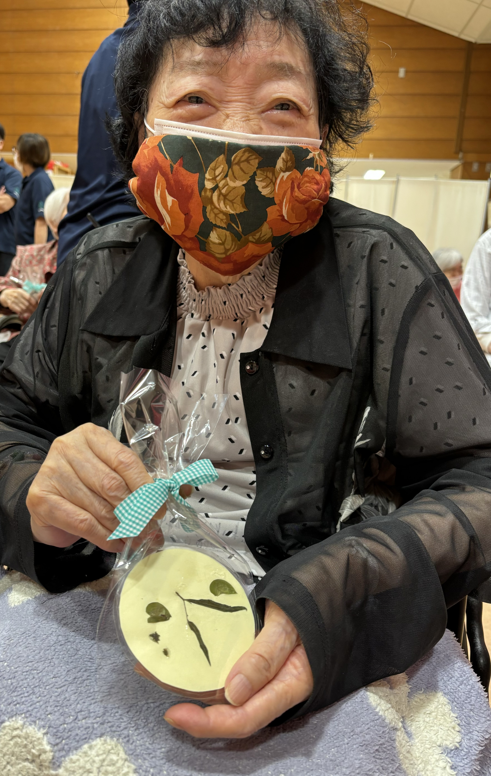 様々な植物の葉っぱを貼り合わせてカードを作ってきてくれました。「えー、いいの?」「すごいね、上手ね。」と皆様嬉しそうにされておりました。