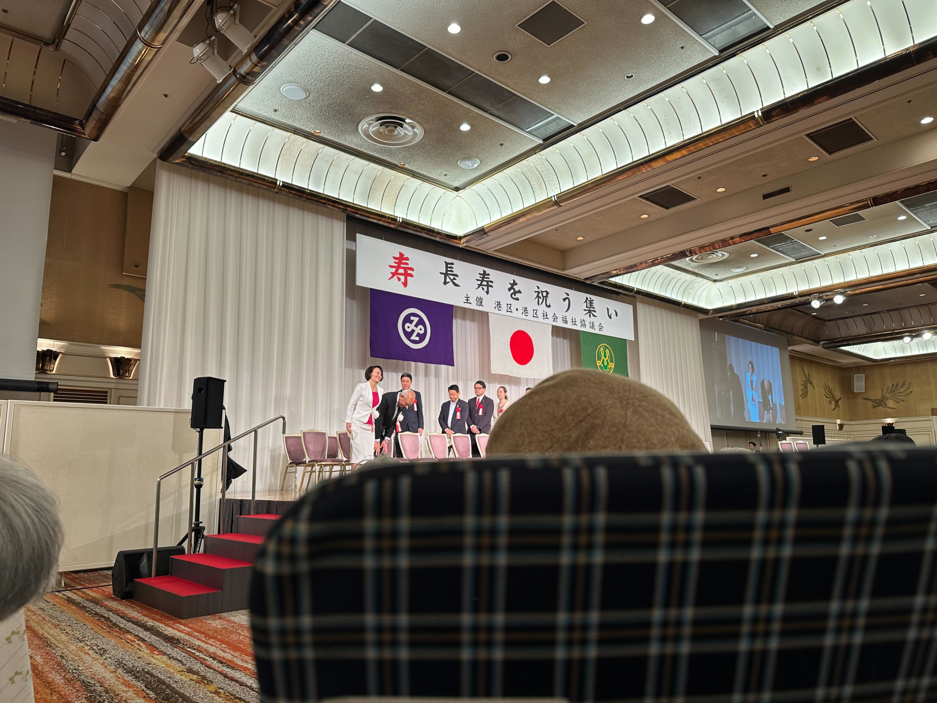 先日は白金の森でもご長寿祝賀会を行わせていただきましたが、本日は港区の長寿を祝う集いにご利用者様と参加してきました!