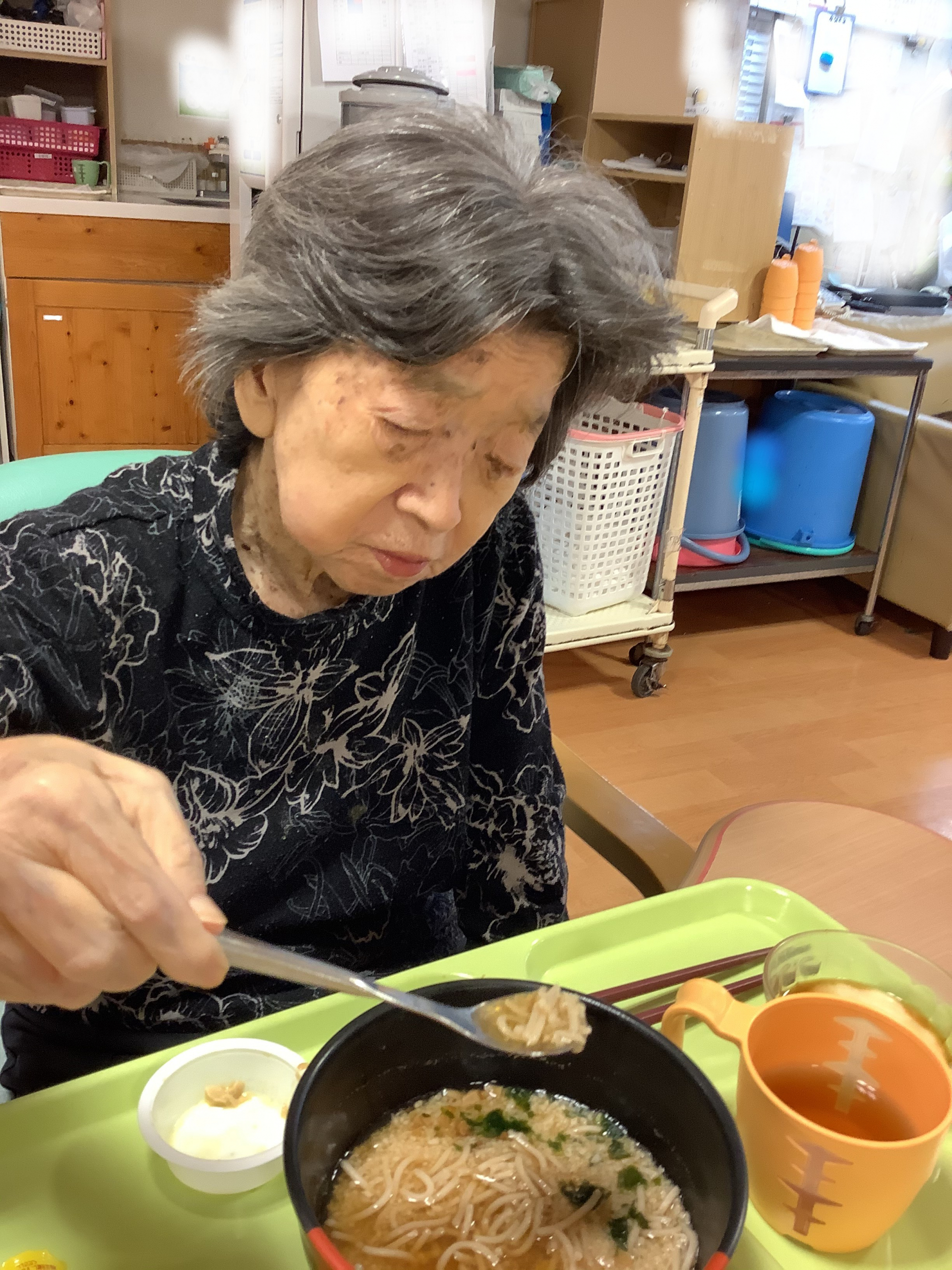 *麺の日・イベント食は…「とろろなめこそば定食」 その2【お食事風景】【入居者様の素敵な笑顔】*
