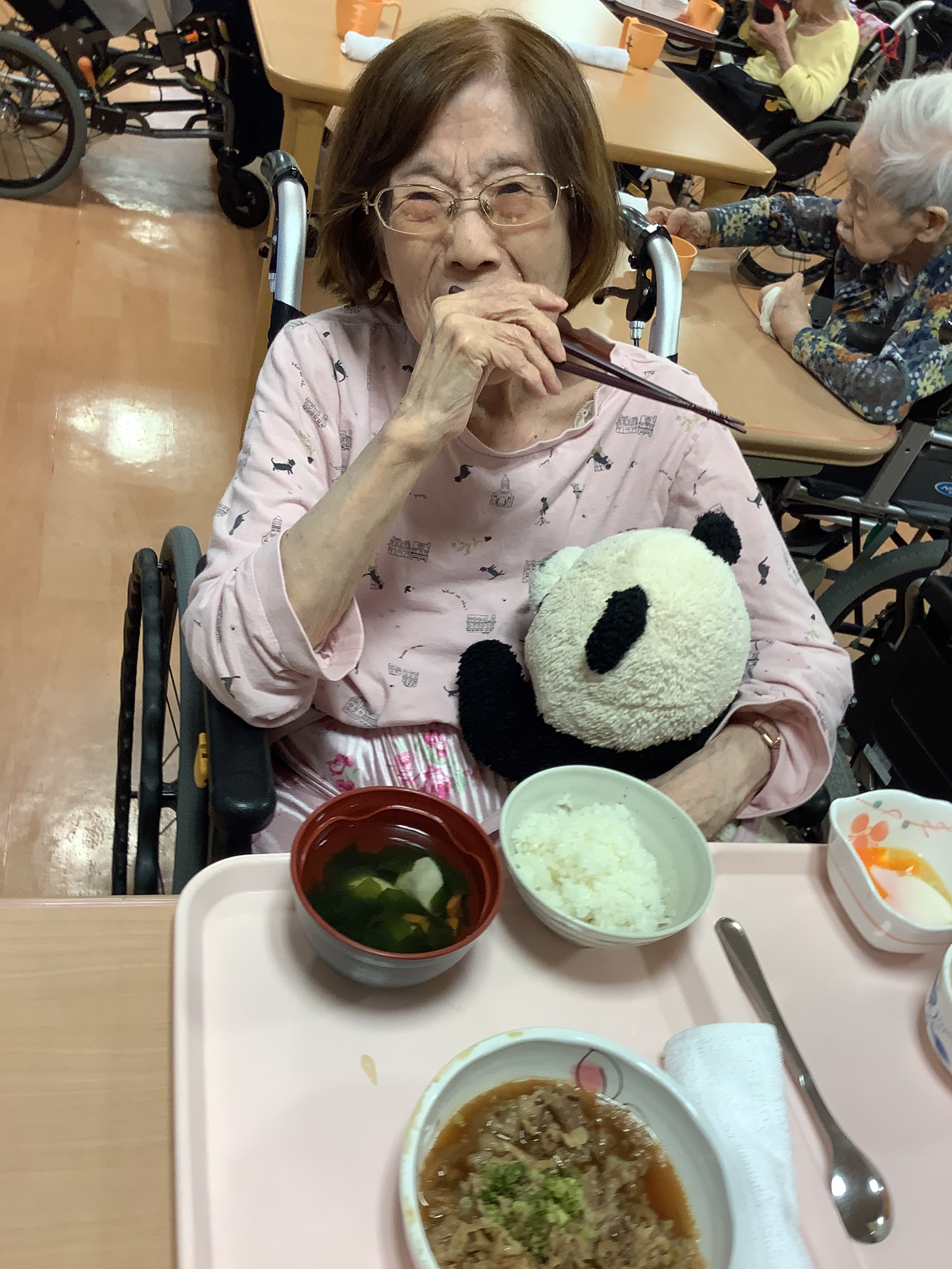 *外食気分を味わう!イベント食…「おでかけランチ~吉野家~」その1 【お食事風景】【入居者様の素敵な笑顔】*
