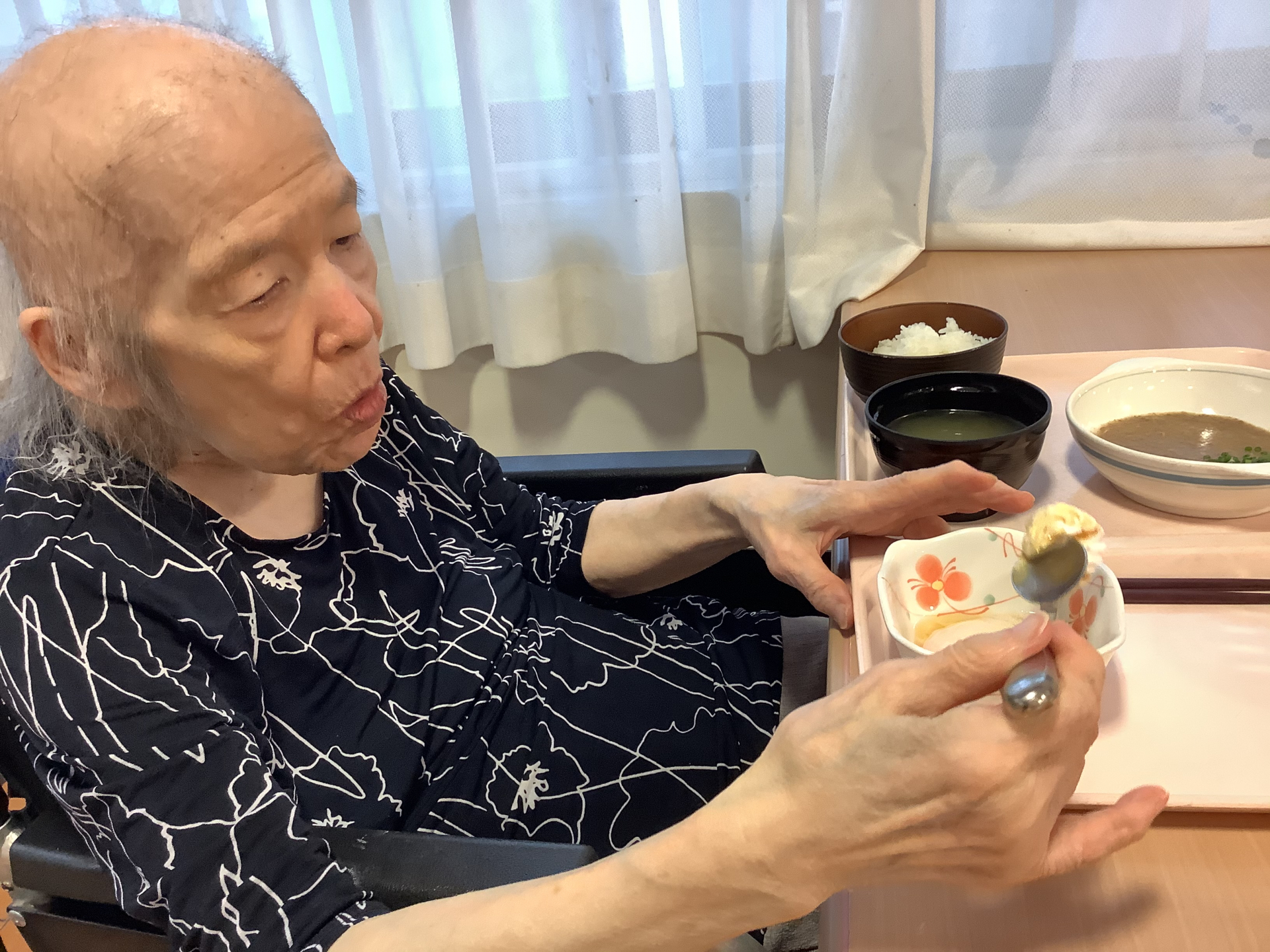 *外食気分を味わう!イベント食…「おでかけランチ~吉野家~」その2 【お食事風景】【入居者様の素敵な笑顔】*