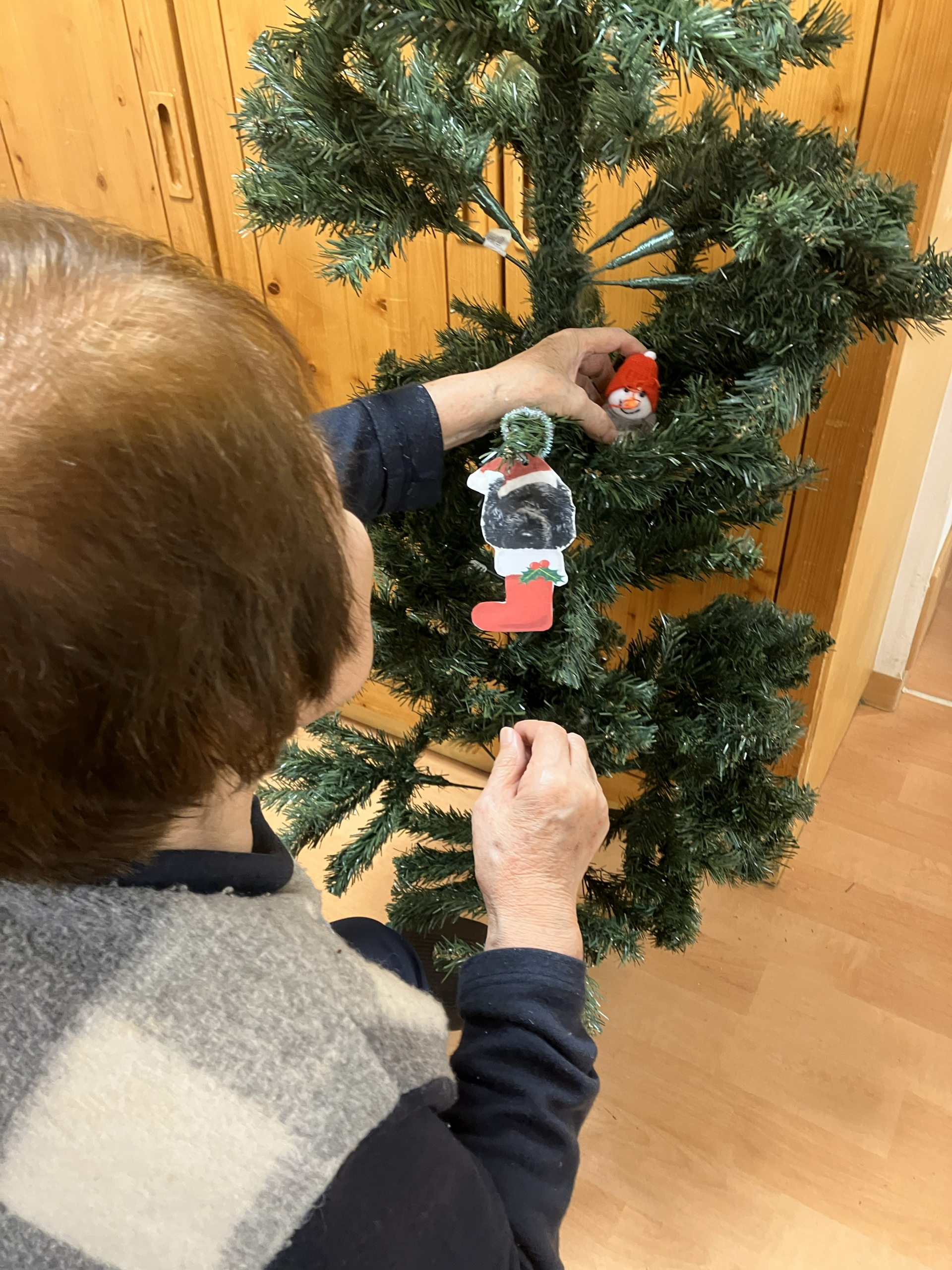雪だるまの飾りを見て「可愛いわね、どこ飾ろうかしら」と楽しそうに飾りつけしてました。