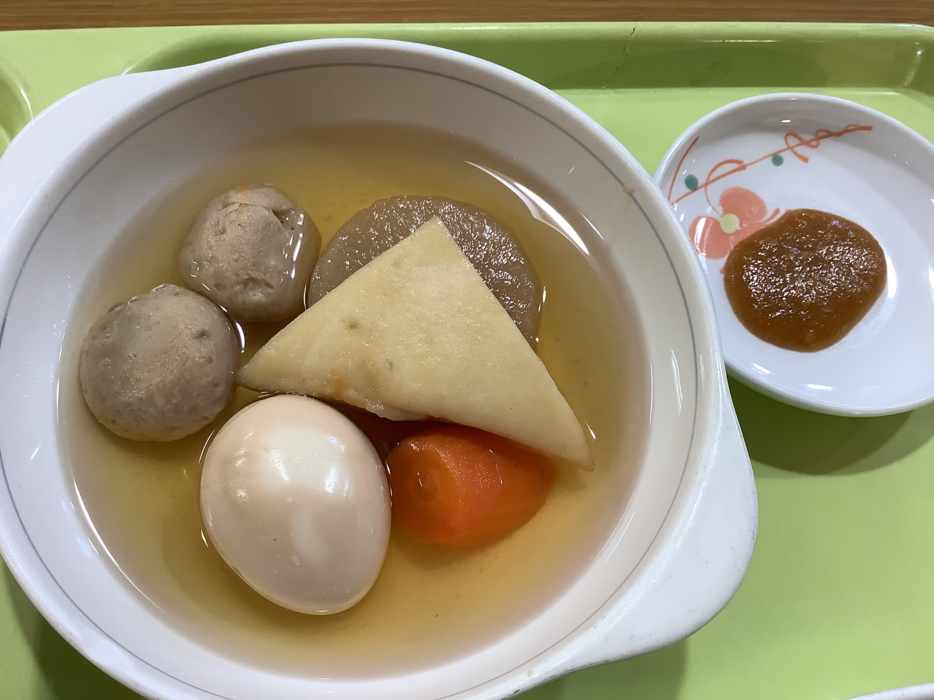 「小田原おでん」の特徴でもある梅味噌。入居者様に大好評で、単独で舐めて召し上がったり、おでんにちょこっと付けて召し上がったり、それぞれのスタイルで堪能されていました。